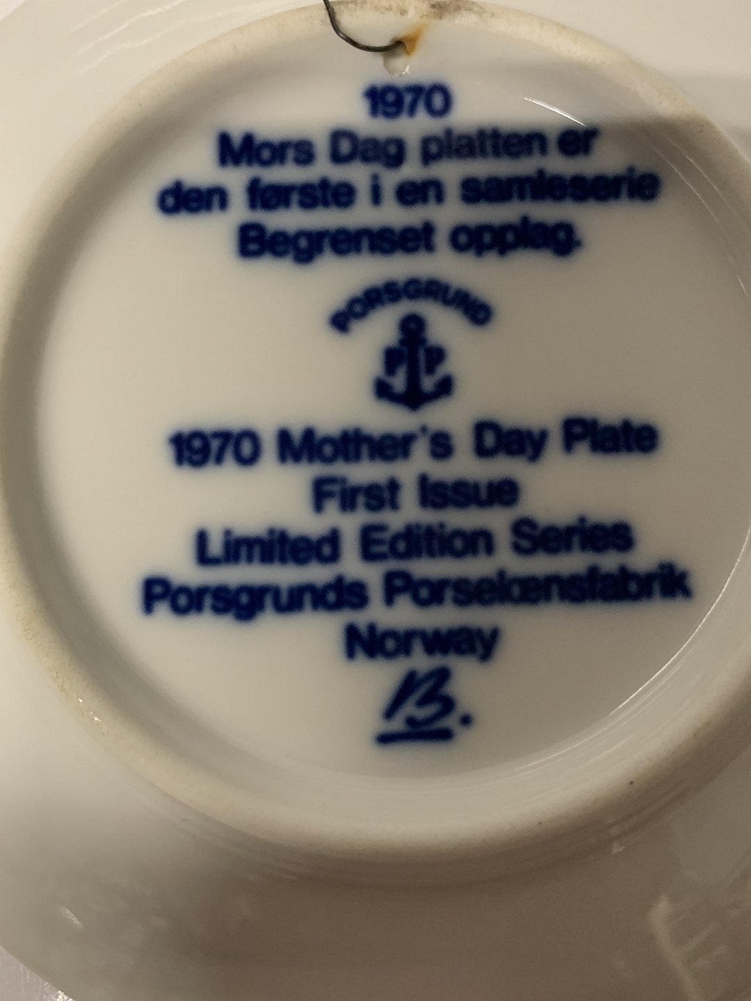 Mother's Day plate year 1970 Deck no #13 Porsgrund Norway Measures 13 cm in diameter Nice and well maintained condition