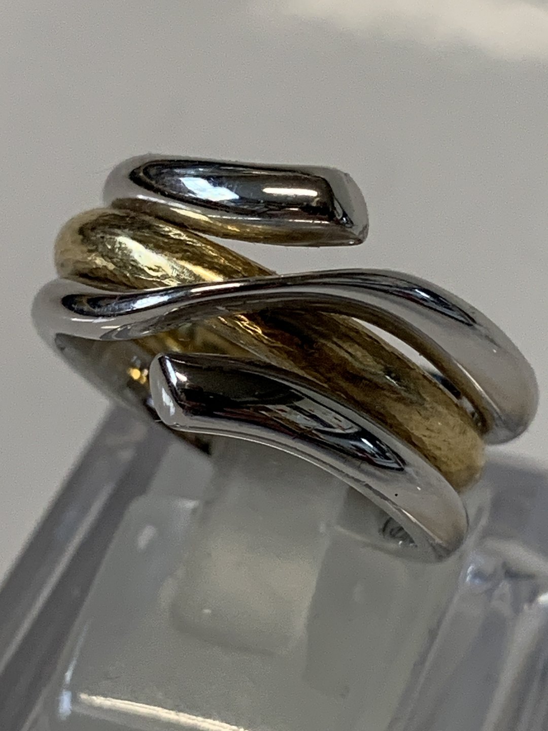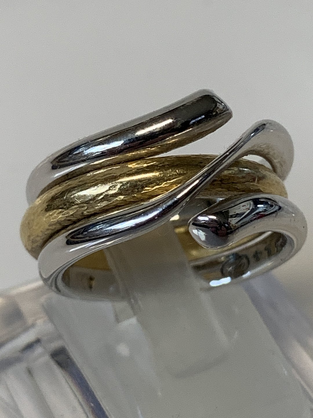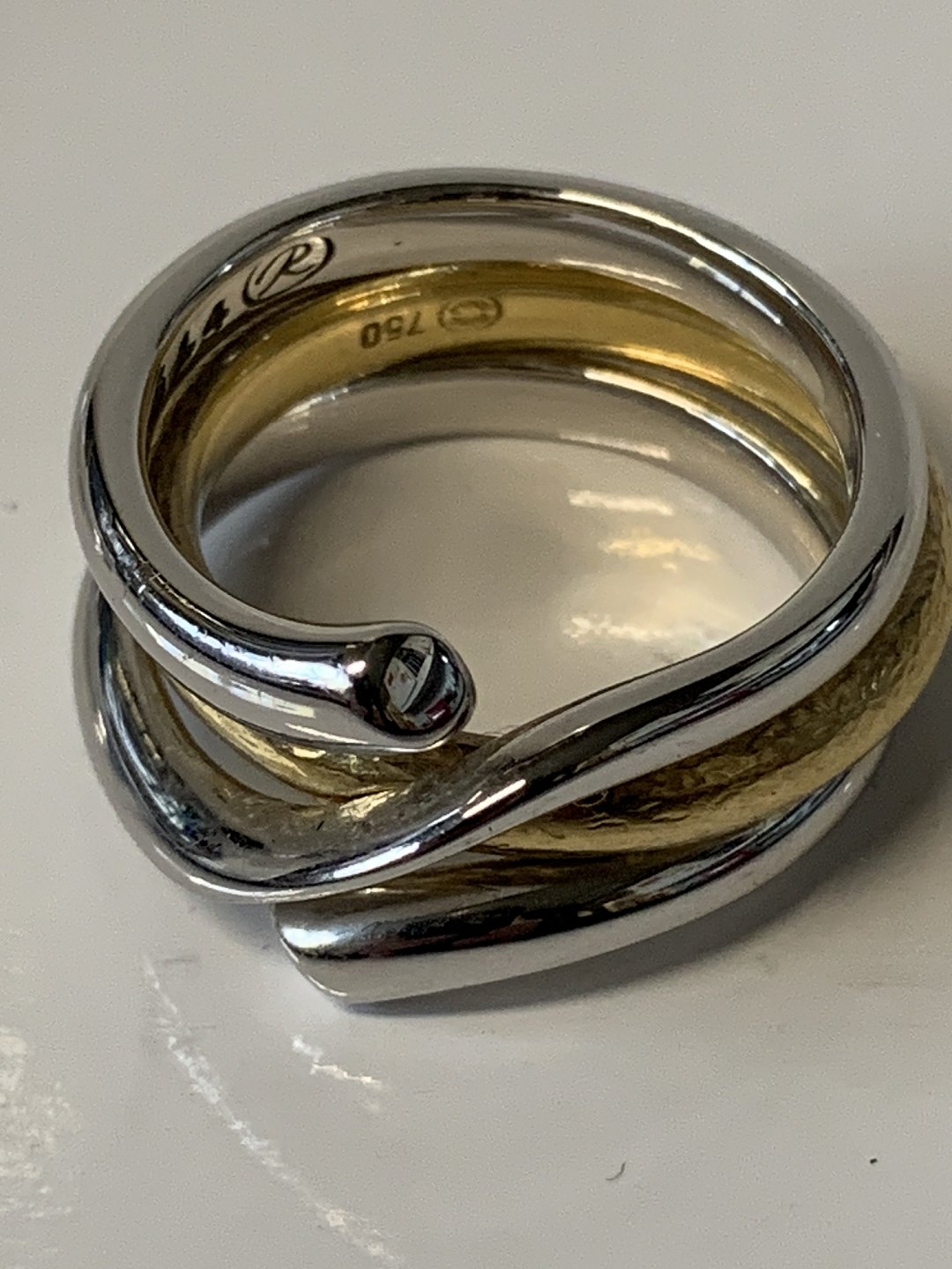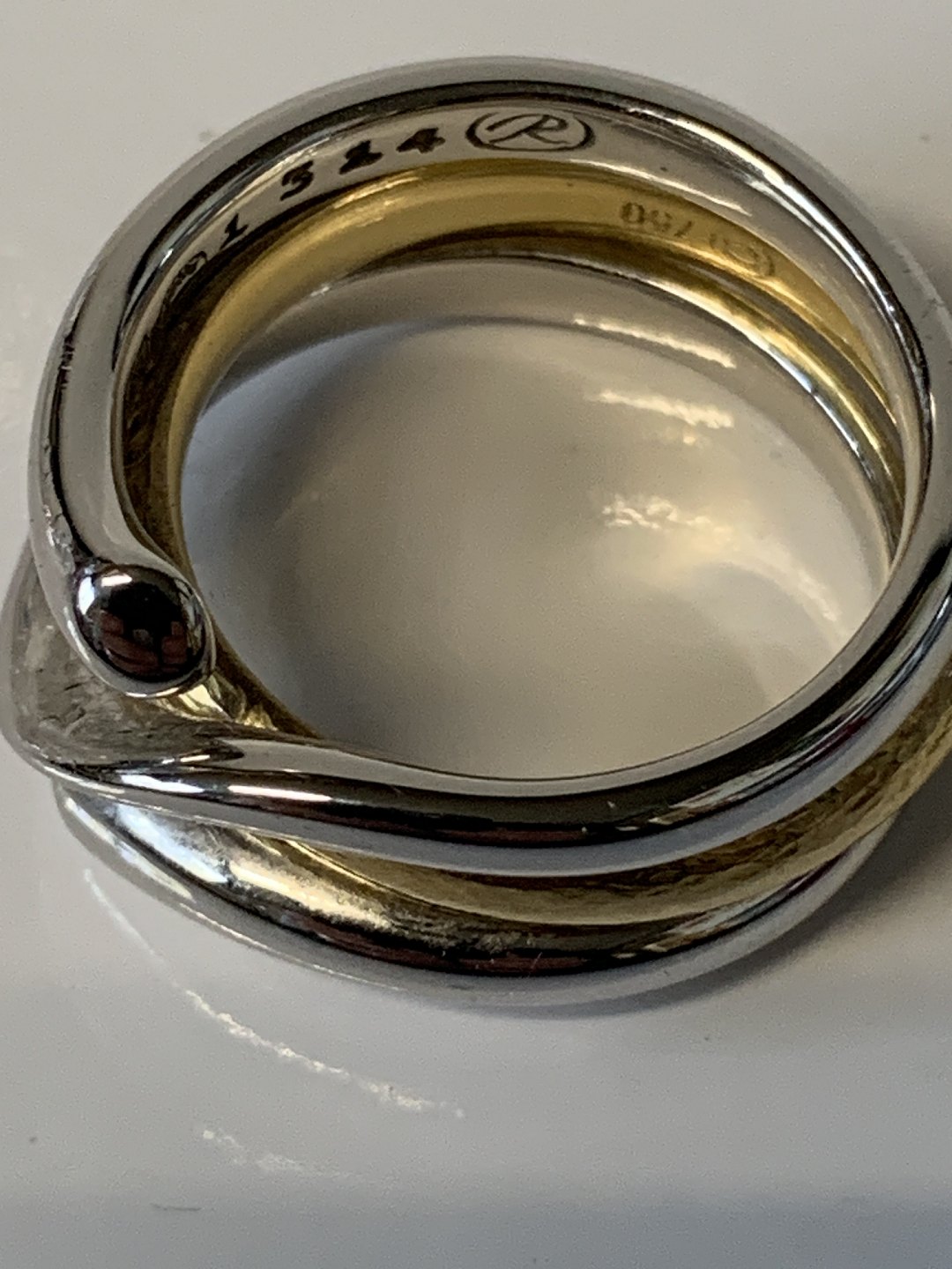This exclusive Magic statement ring from Georg Jensen is something very special. On the one hand, it is in 18 carat gold, and then it has many different expressions. The ring itself consists of 3 parts, the ring in white gold with the timeless pattern, a minimalist single ring in 18 Karat red gold and 2 rubber rings. This means that the ring can be worn with different expressions.