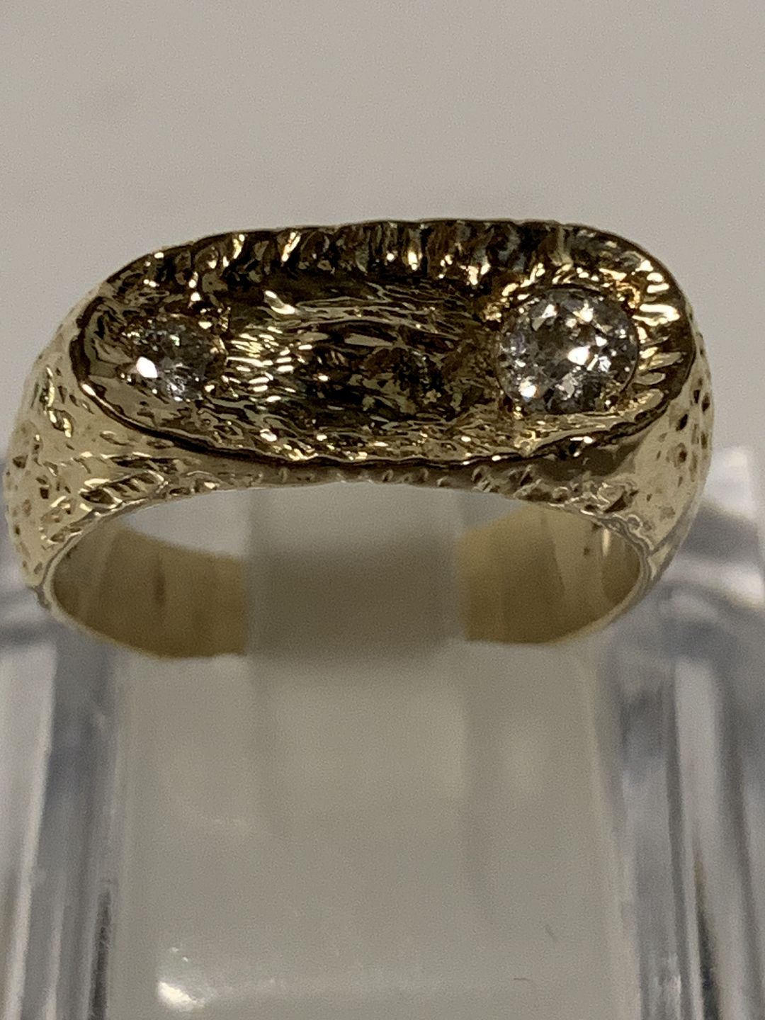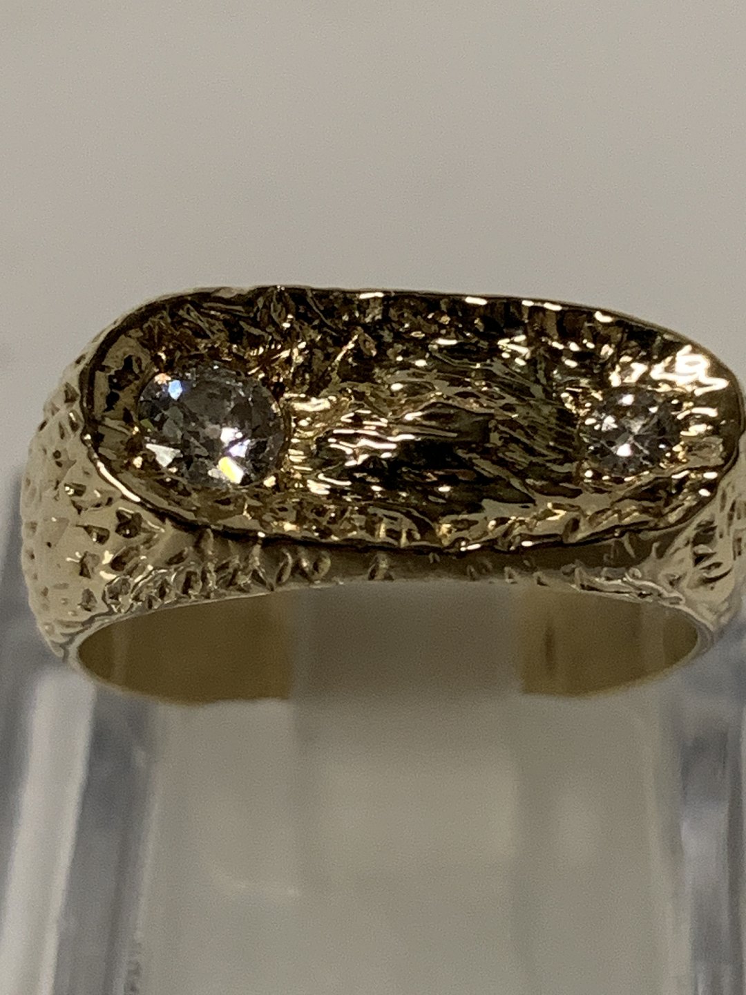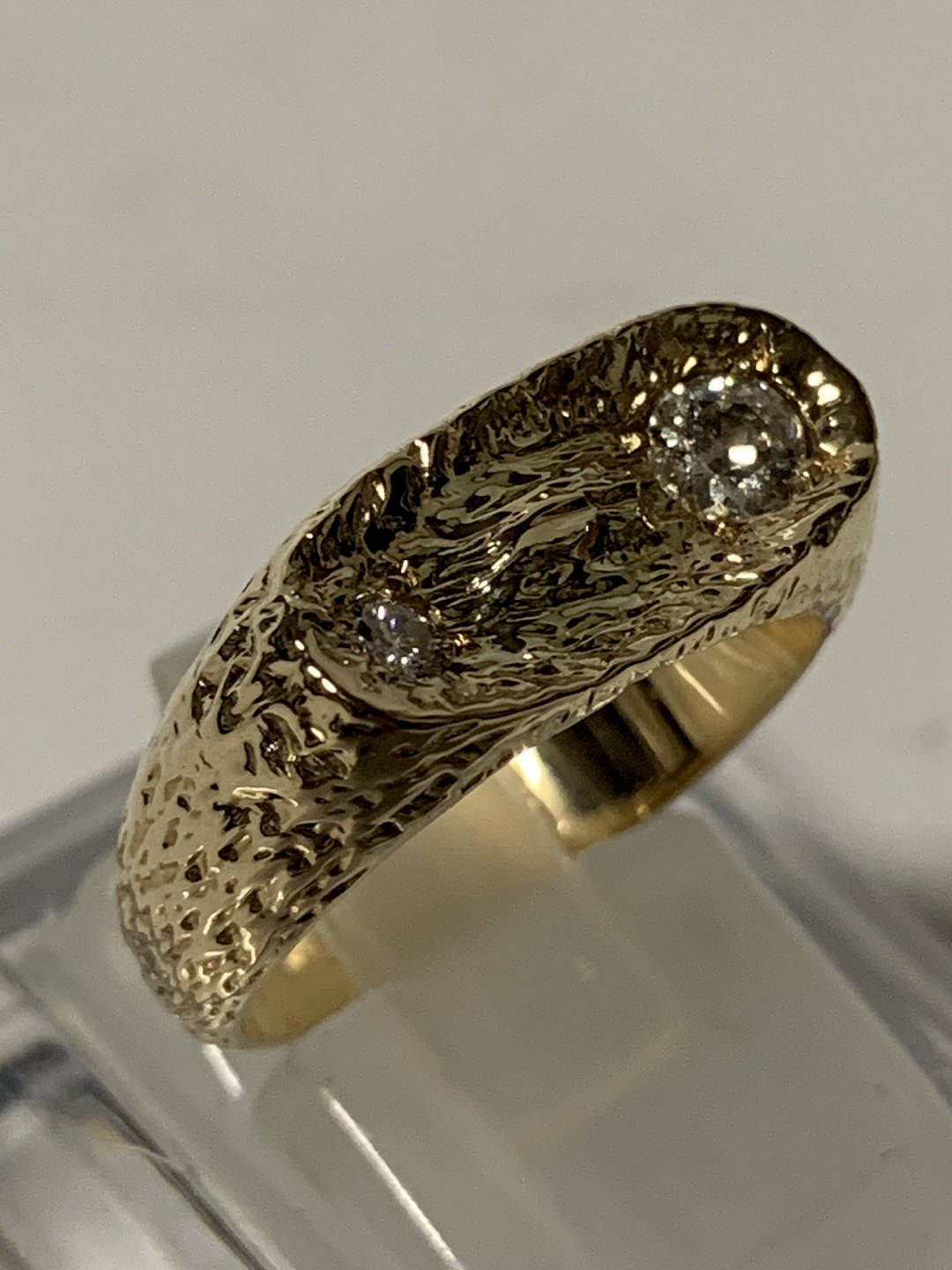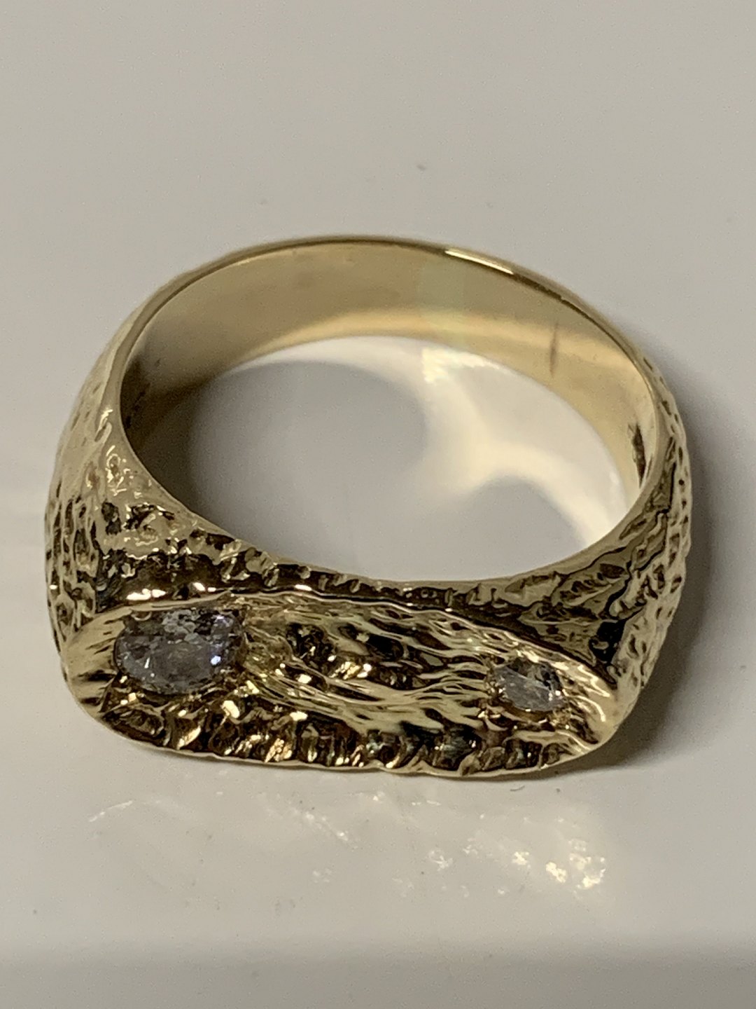 Guldring med to diamanter i 14 karat guld