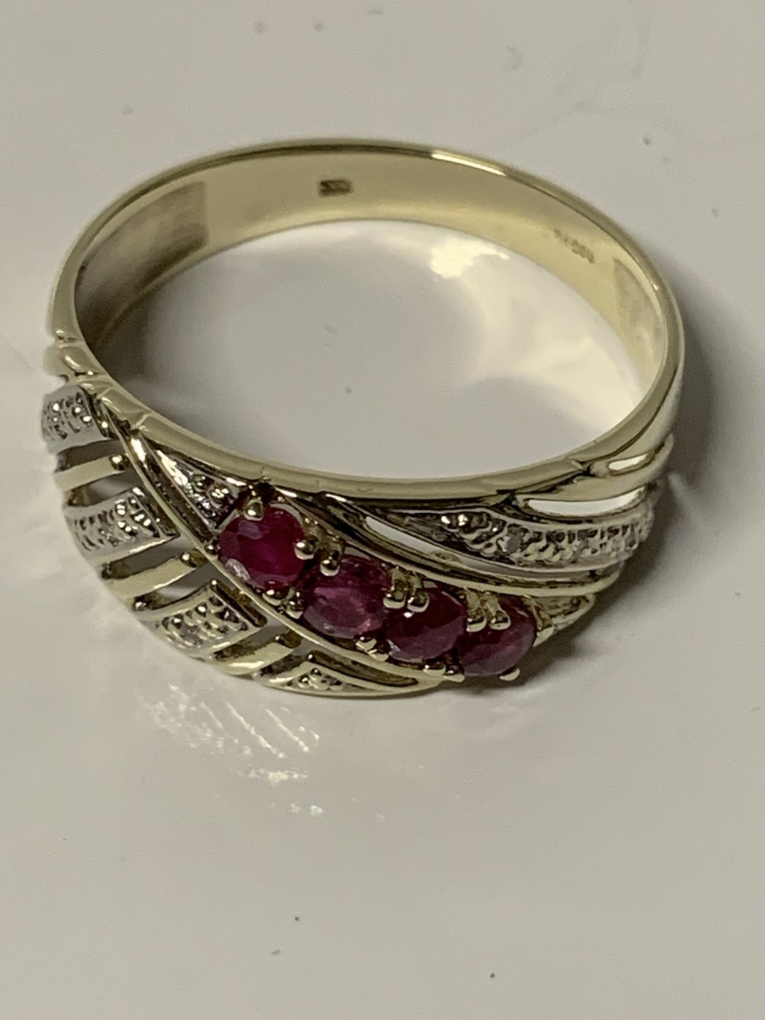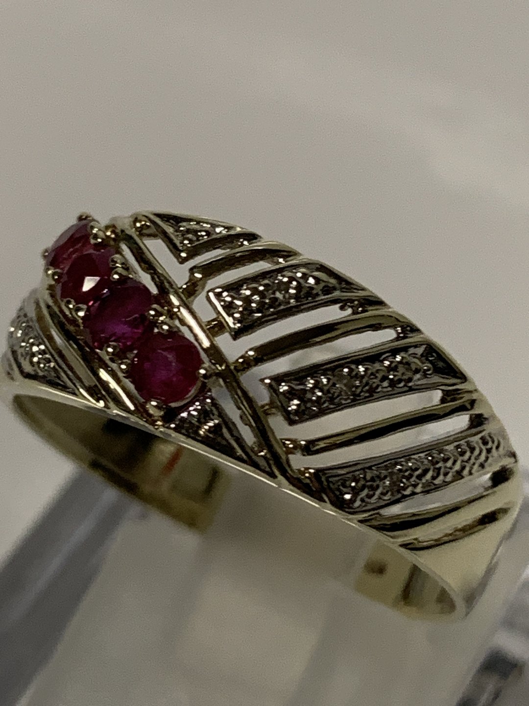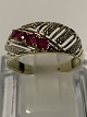 Flot Damering, med røde rubiner samt indlagte diamanter, i 8 karat guld.