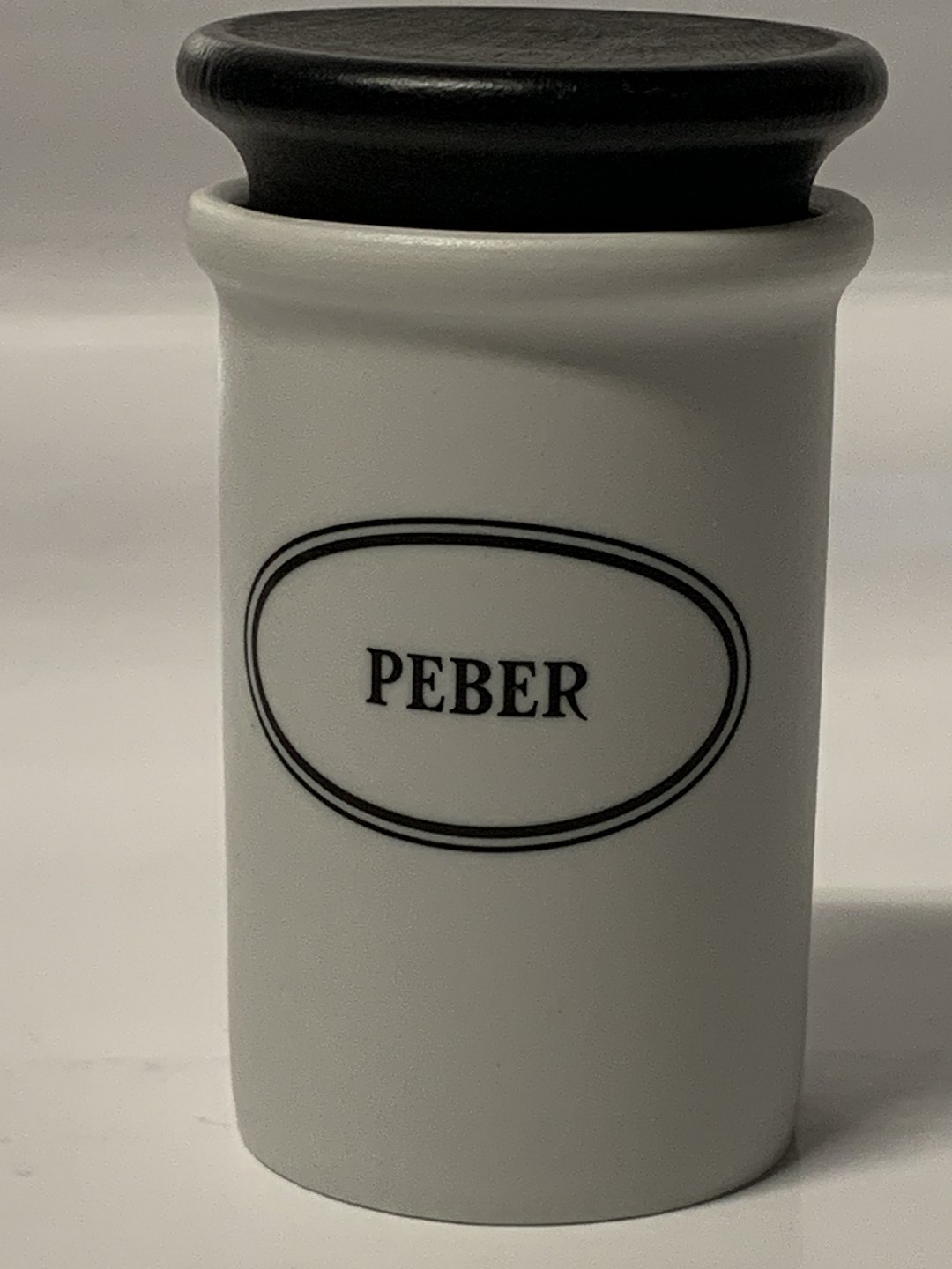 Eslau, Peber krydderikrukke. Højde med låg 10,5 cm.