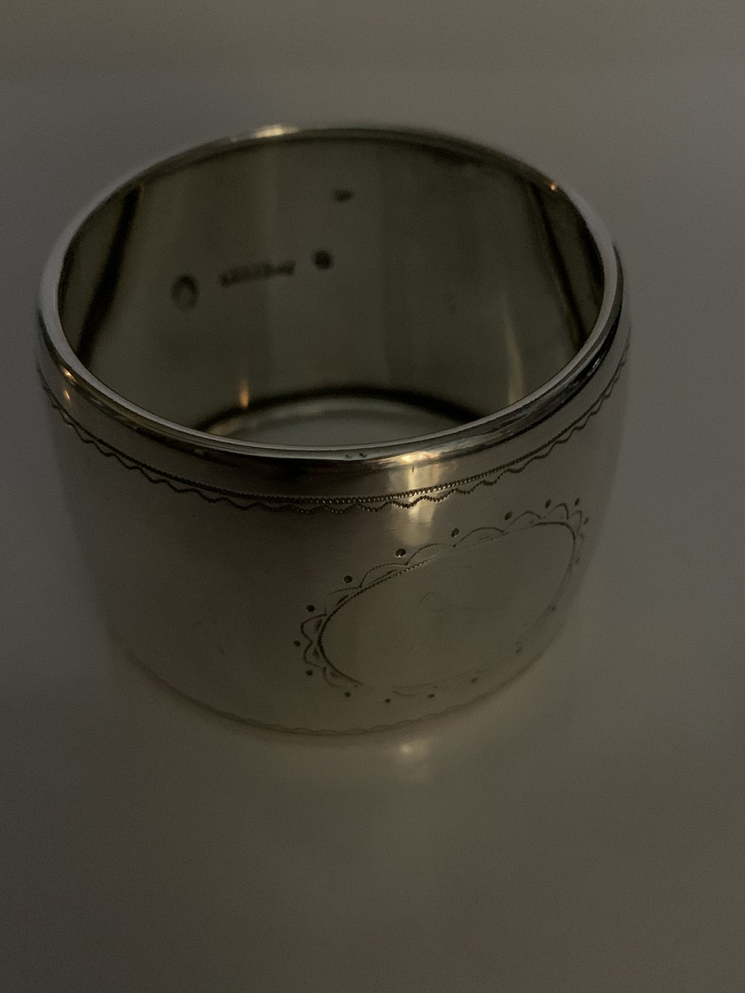 Napkin ring Silver. Stamp: Three Towers. Size: 3.5 x ø 4.6 cm. Well-kept condition. Polished and packed in bag.