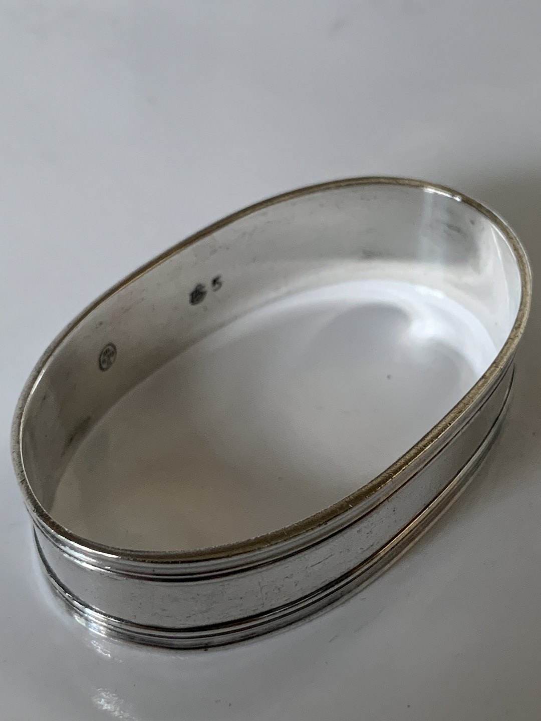 Servietring Sølv. Stemplet: 830S. Størrelse: 1,3 x ø 5,2 cm. Velholdt stand. Poleret og pakket i pose.