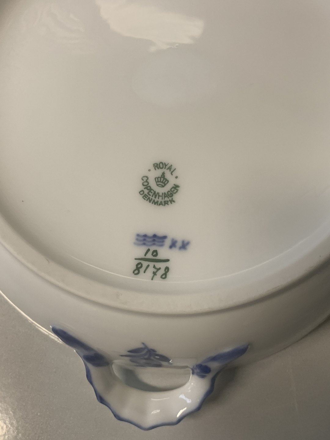 Royal Copenhagen Blue Flower Braided base for lidded dish. Decoration number 8178. Height 6 cm. Diameter 20 cm. 1st grade. Perfect condition without any flaws.