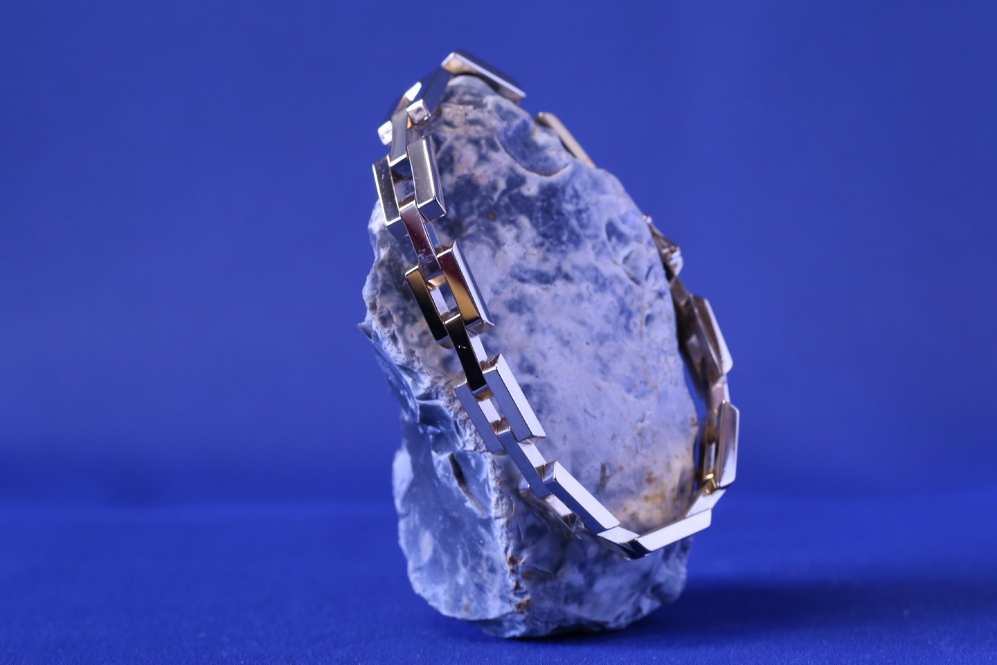 Beautiful classic Blok gold bracelet in 14 carat gold, with 3 rows and box clasp. The bracelet is designed in the classic Blok pattern.