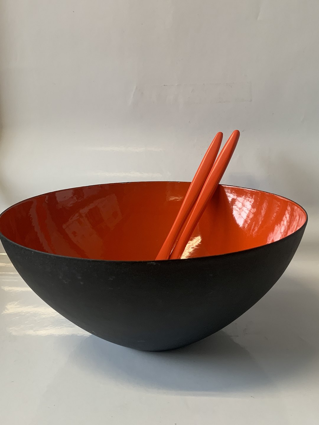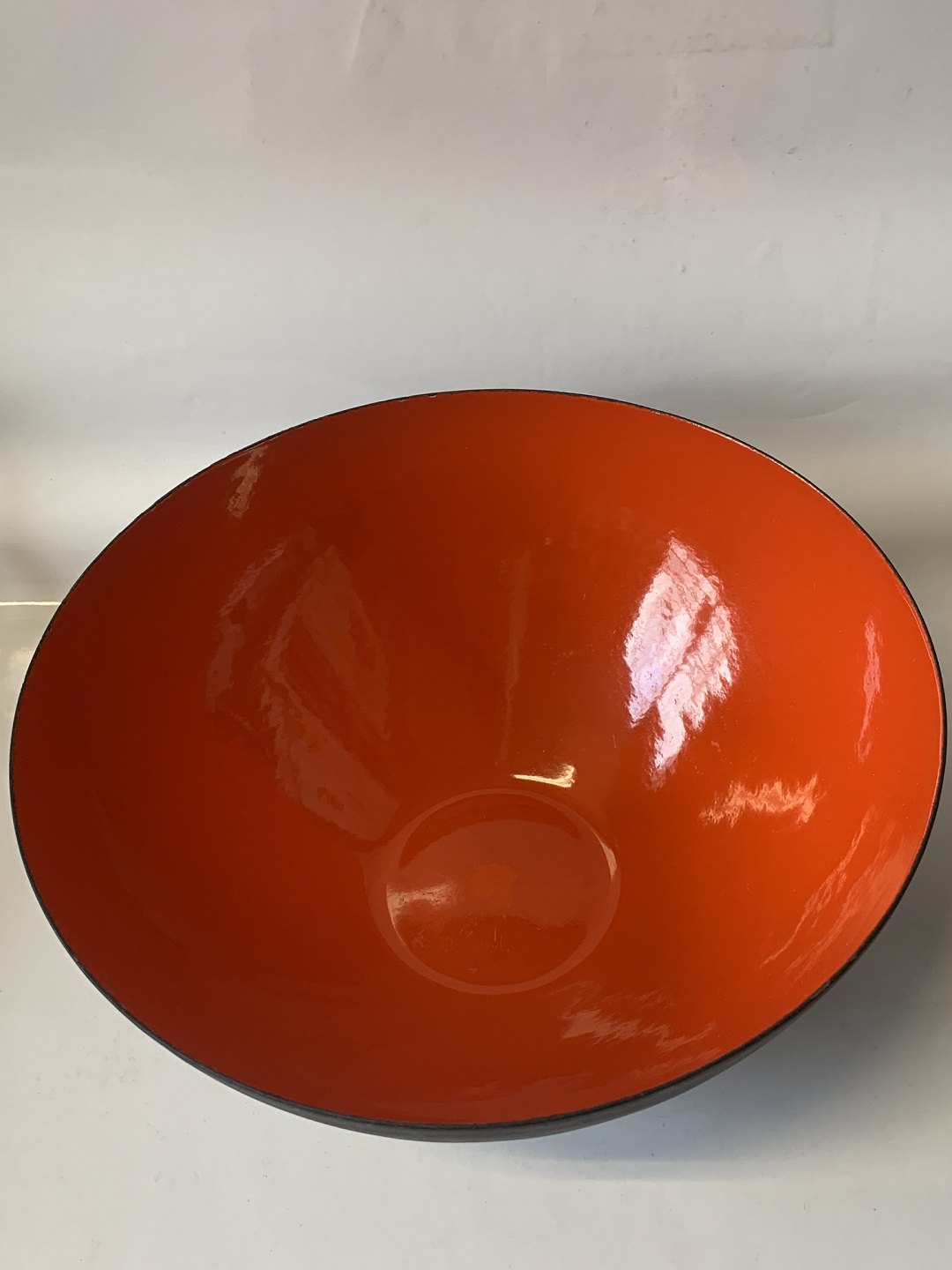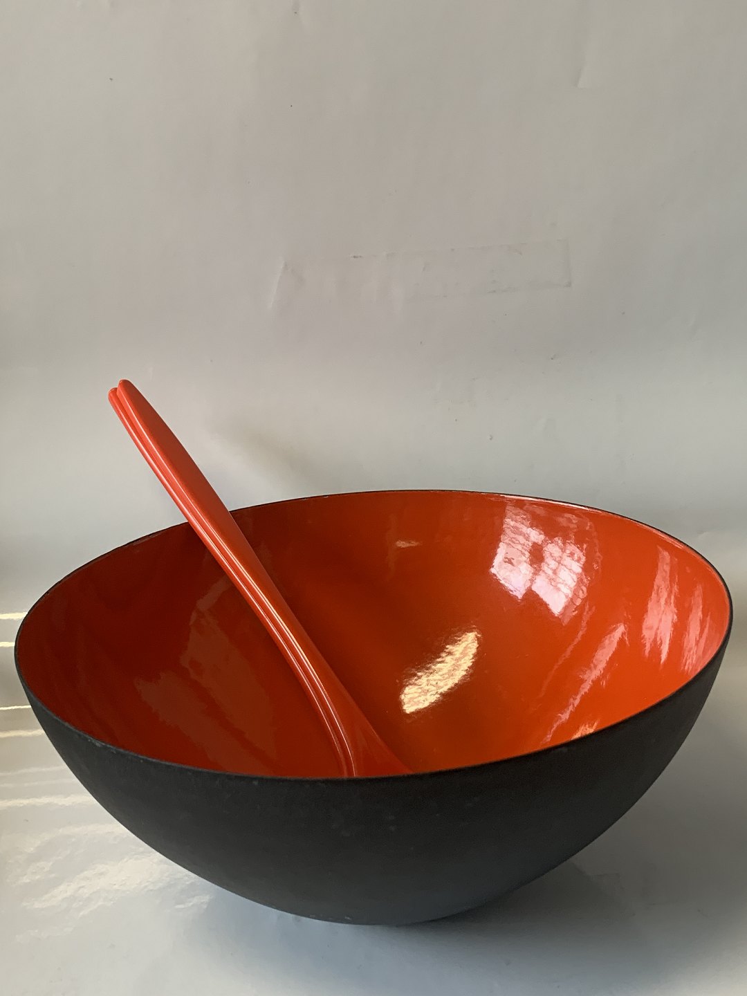 Herbert Krenchel, Krenit salad bowl from the 1950s. He designed the enamel bowl: the Krenit bowl in 1953. The name Krenit is a contraction of Krenchel and eternit Diameter 25 cm. Height 11 cm. Some wear otherwise well-kept.