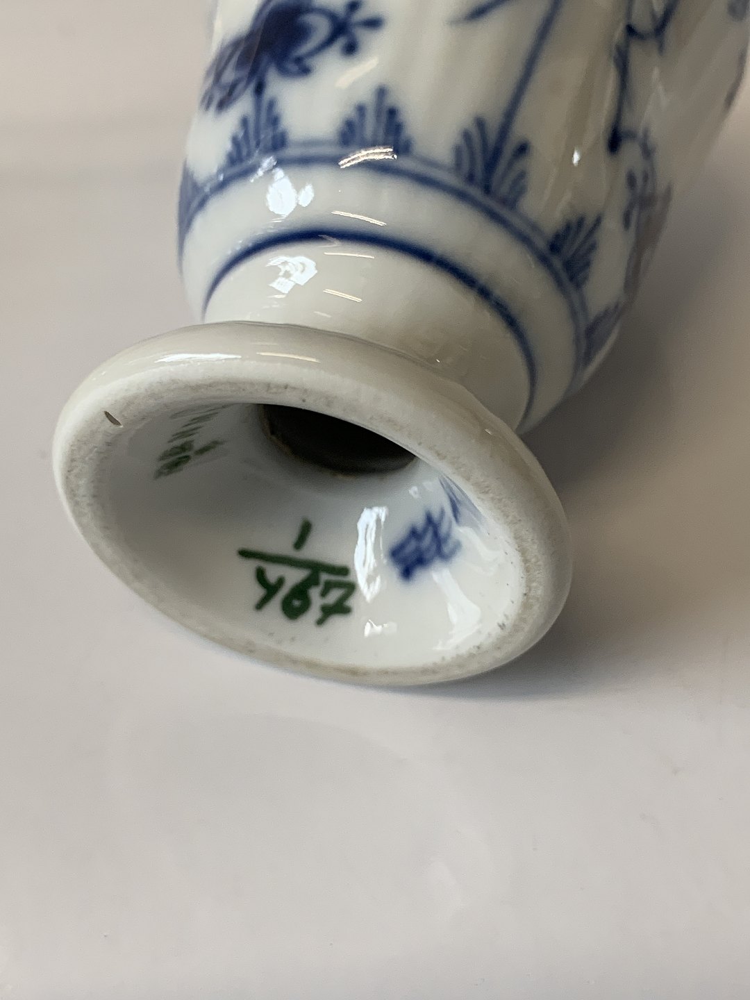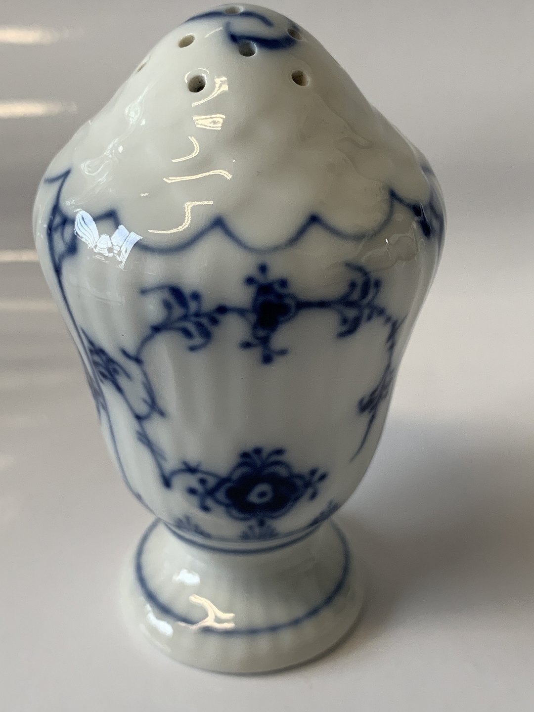 Royal Copenhagen Musselmalet Riflet peberbøsse. Dekorationsnummer 1/467 eller nyt nummer 531. 1. sortering. Højde 8,2 cm. Perfekt stand uden fejl.