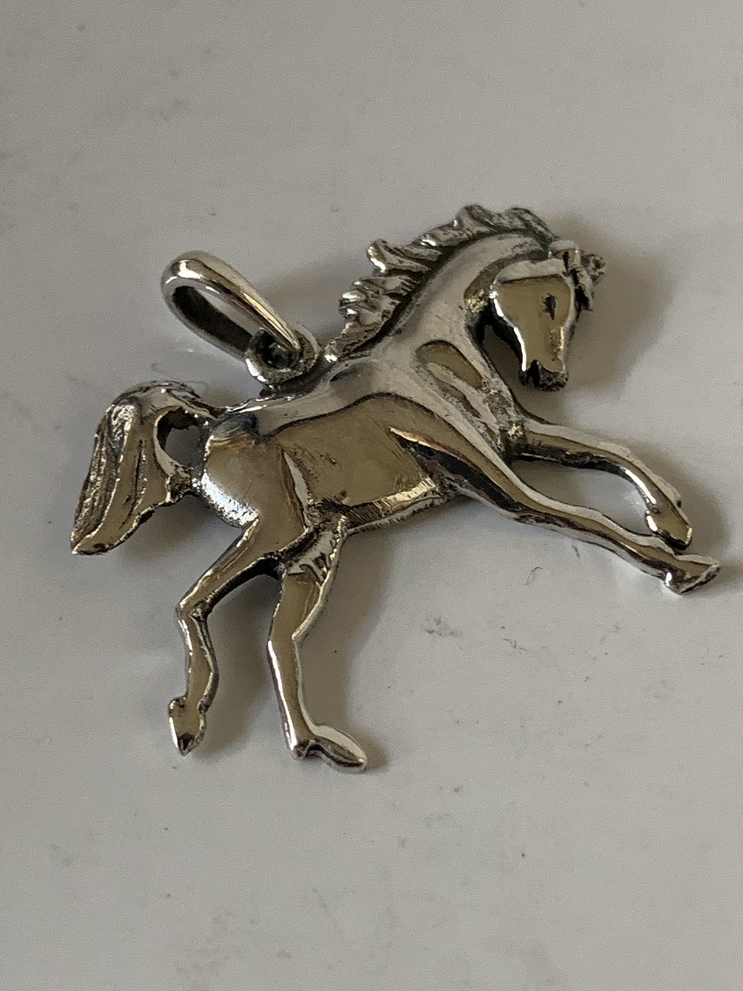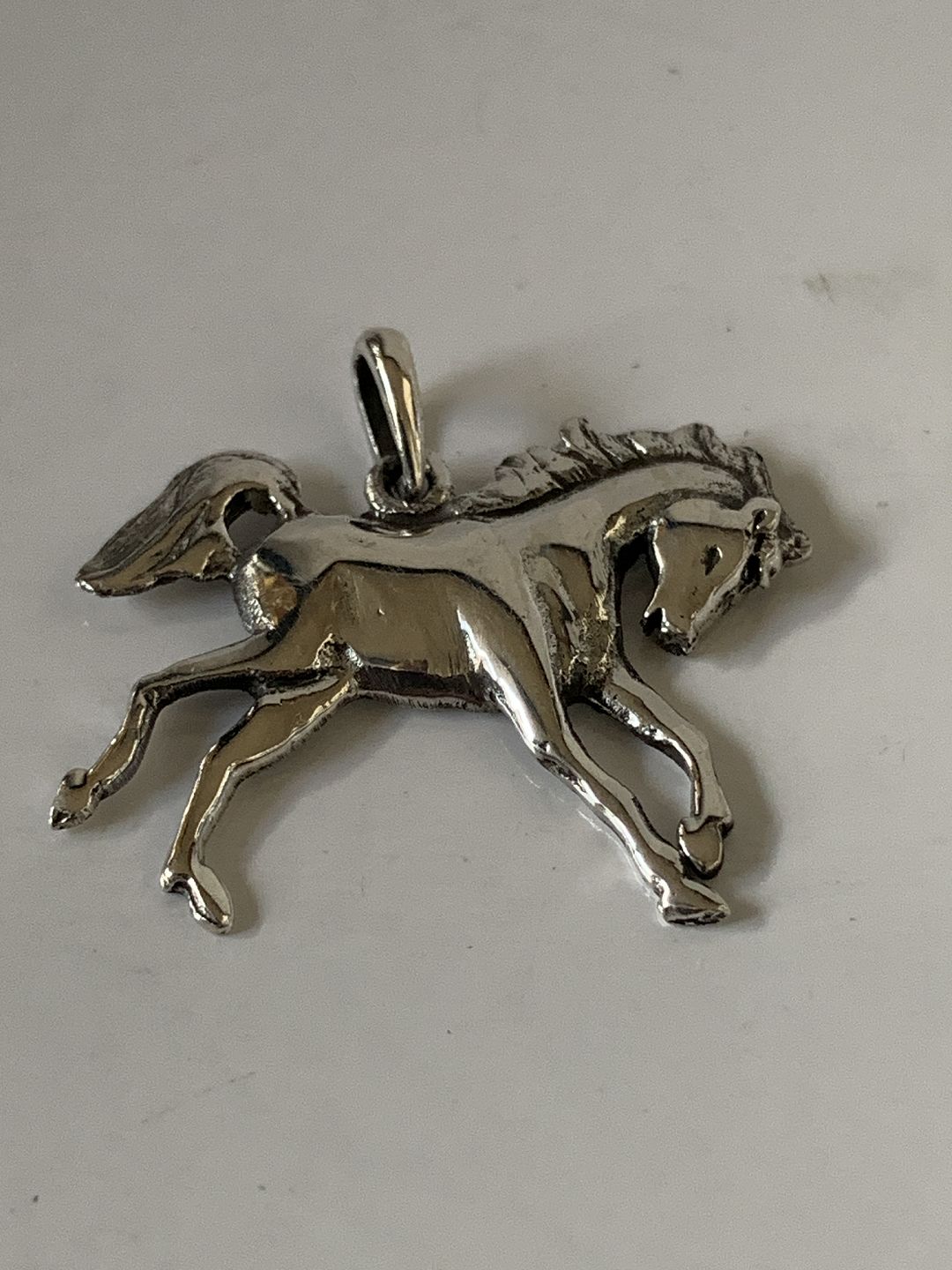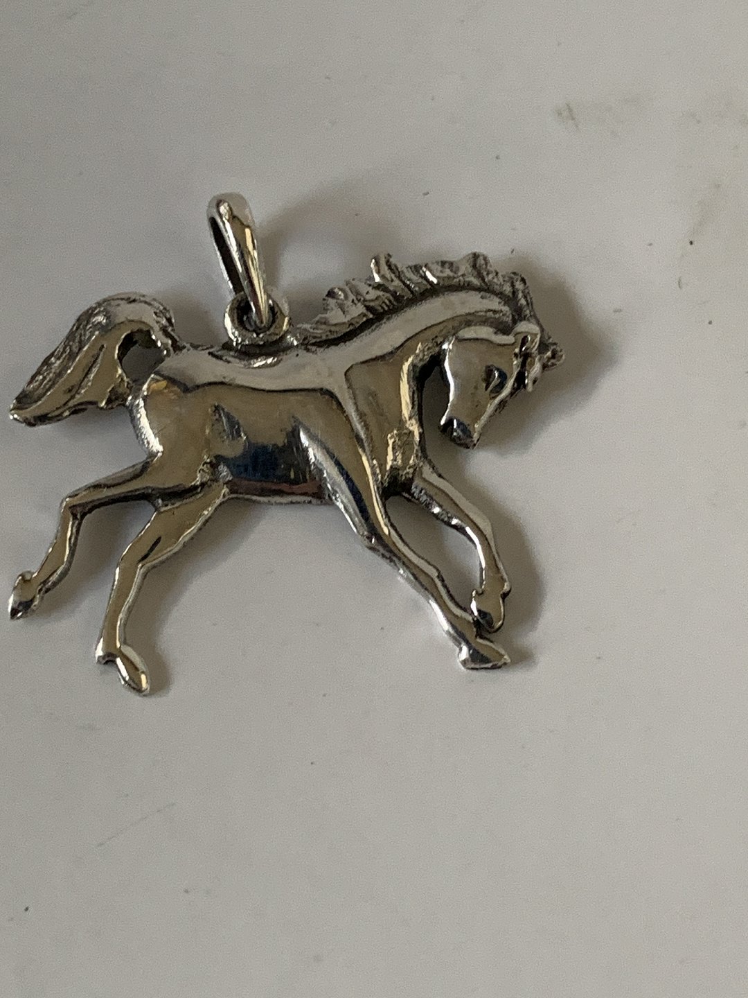Pendants/Charms in sterling silver motif Horse. Measures 26.05 mm wide. Height 18.29 mm 22.87 mm with the eyelet. Perfect condition.