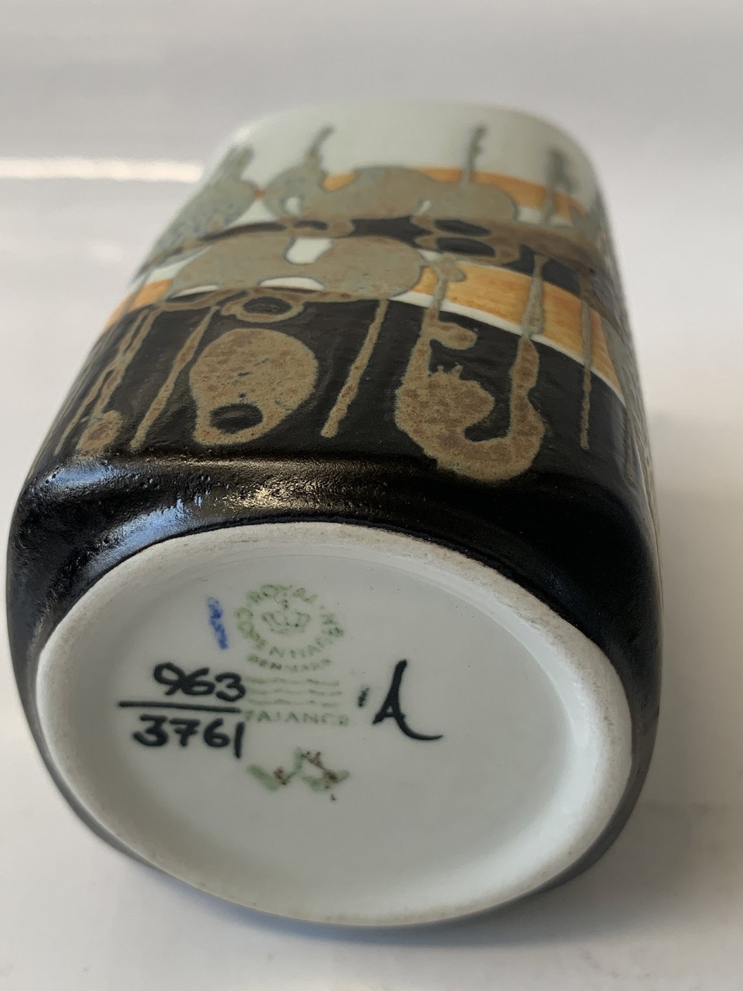 Royal Copenhagen Faience Siena, small vase. Designed and signed by Ivan Weiss. Decoration number 963/3761. 1st grade. Height 7.8 cm. Perfect condition without any flaws.