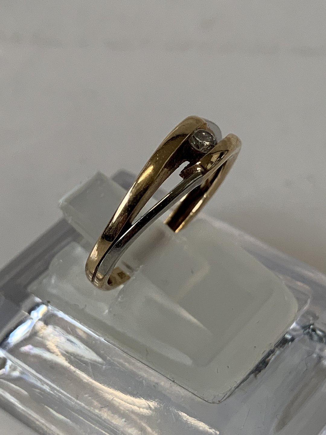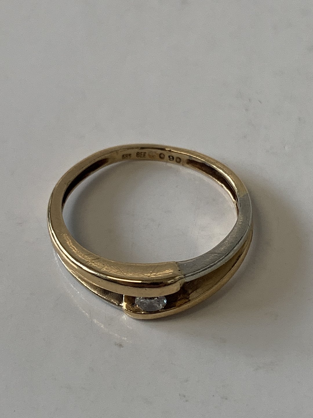 Guldring med Brillant, 14 Karat, Rød og Hvidguld Stempel: 585, BEE, 0.09 Guldsmed: 1981- Bent Eriksson Størrelse: 50 / 15,92 mm. Flot og Velholdt. Varen findes ikke fysisk i butikken Kontakt os for fremvisning