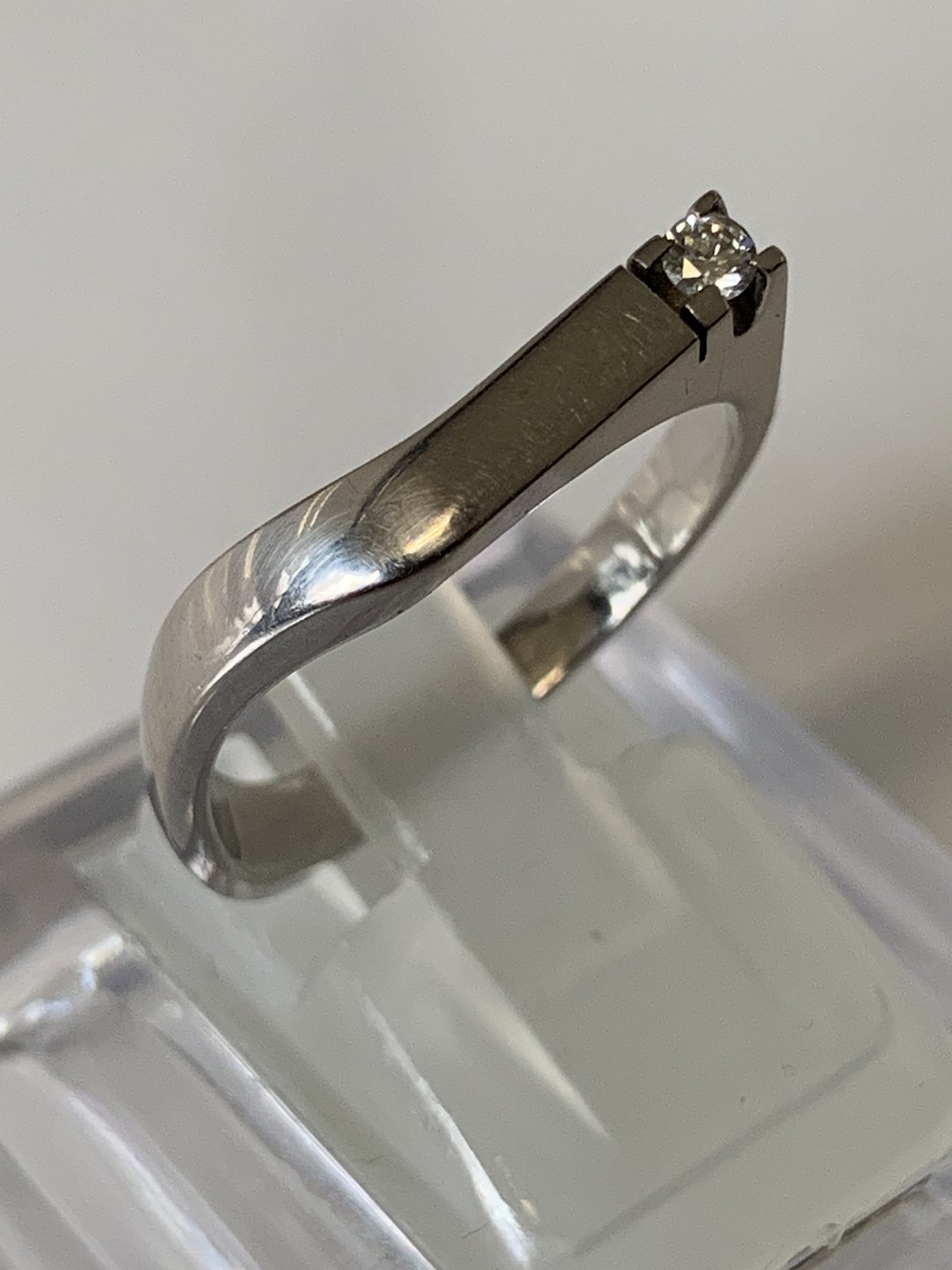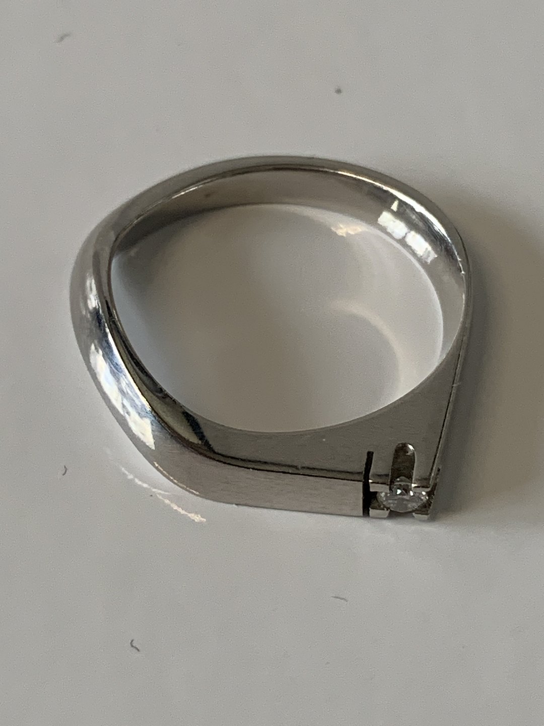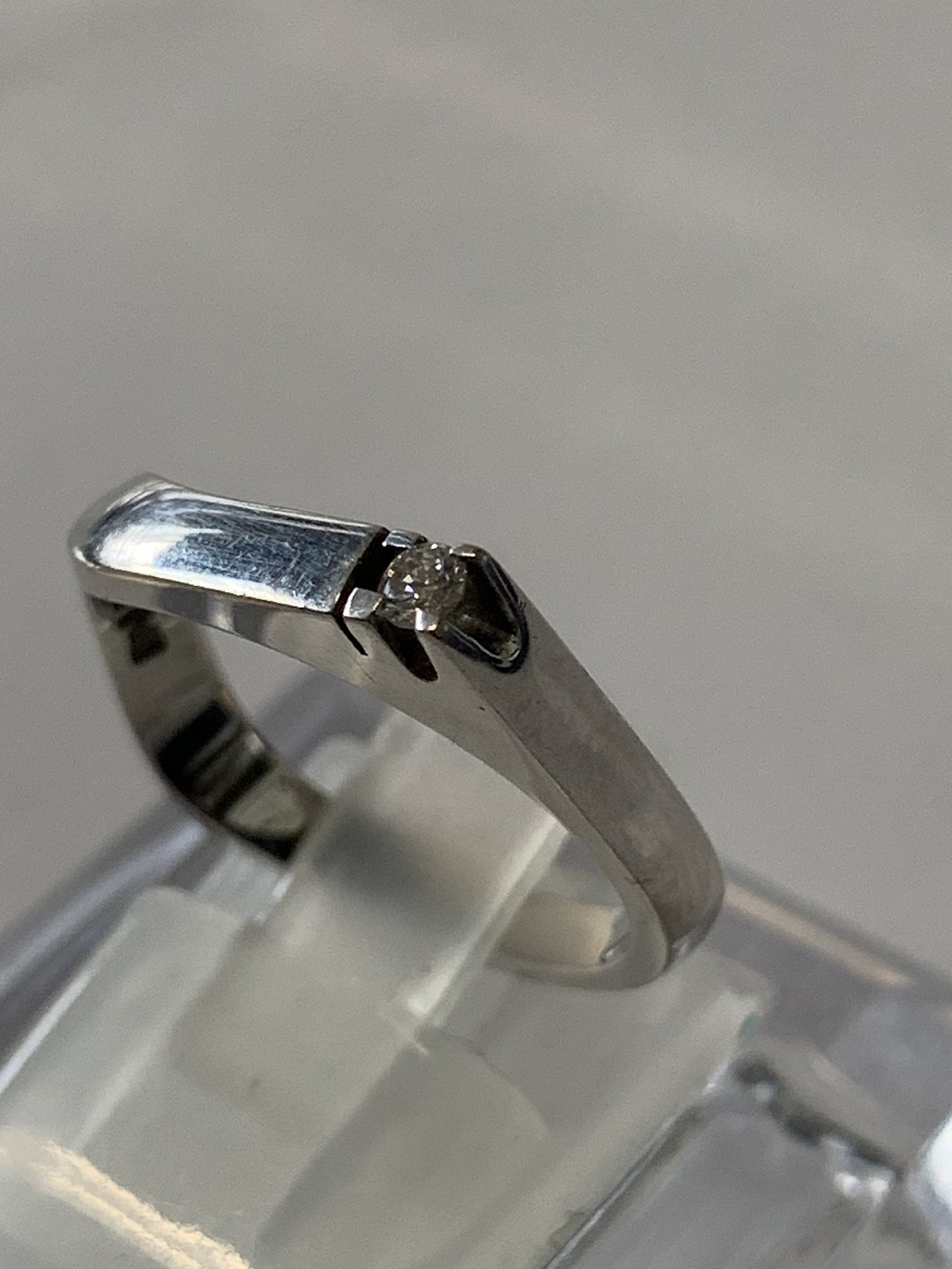 White Gold Ring with Diamond, 14 Karat Stamp: 585, Unclear master's stamp Size: 54 / 17.19 mm. Beautiful and well-maintained. The item is not physically available in the store Contact us for a demonstration