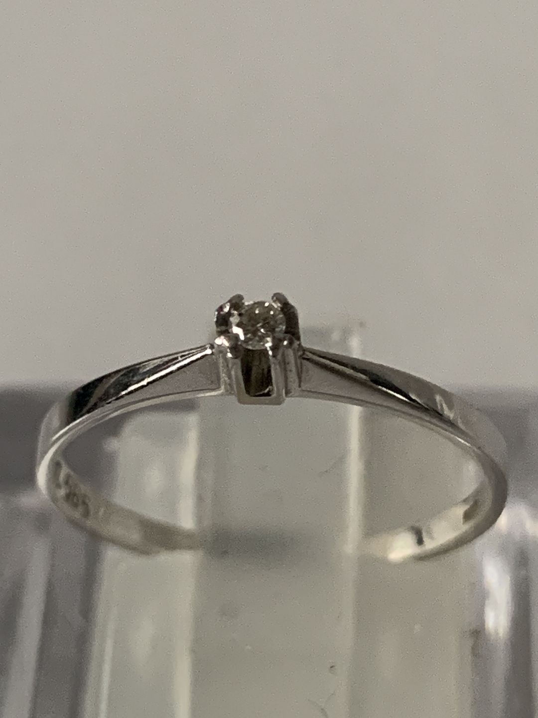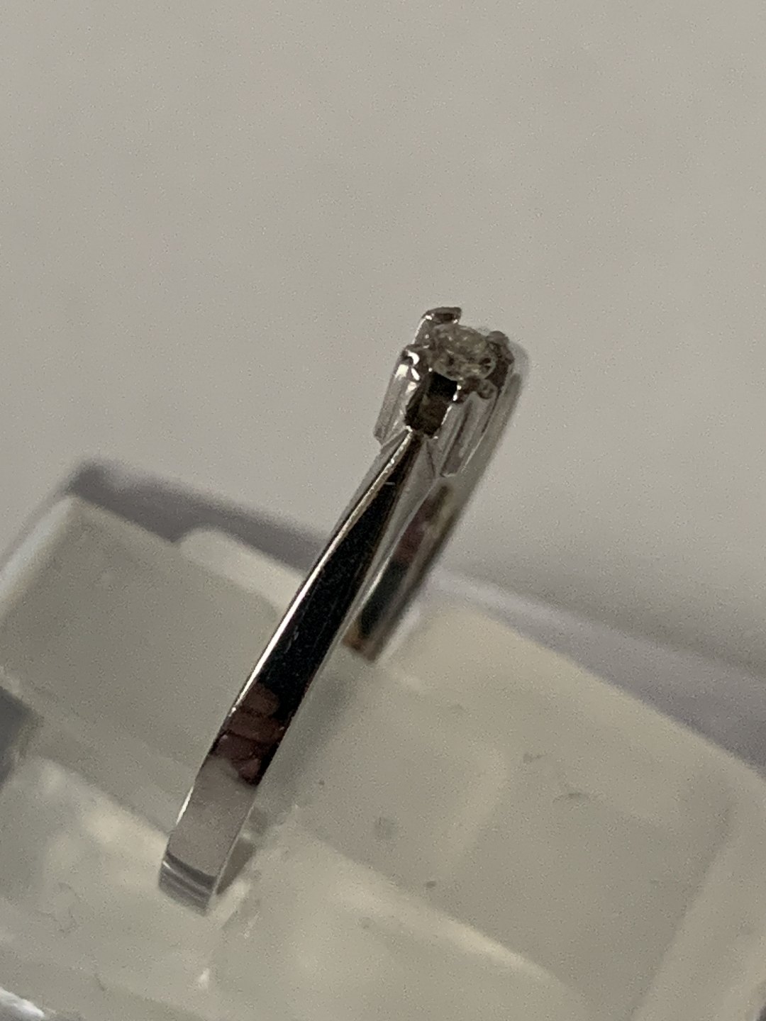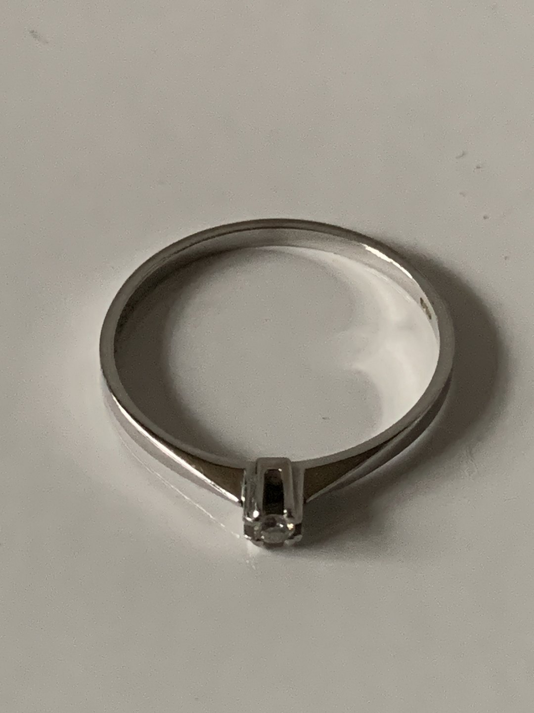 Guldring med Brillant 14 Karat, Hvidguld Stemplet: KL, 585 Størrelse 52 / 16,55 mm. Flot og velholdt stand. Varen findes ikke fysisk i butikken. Kontakt os for fremvisning