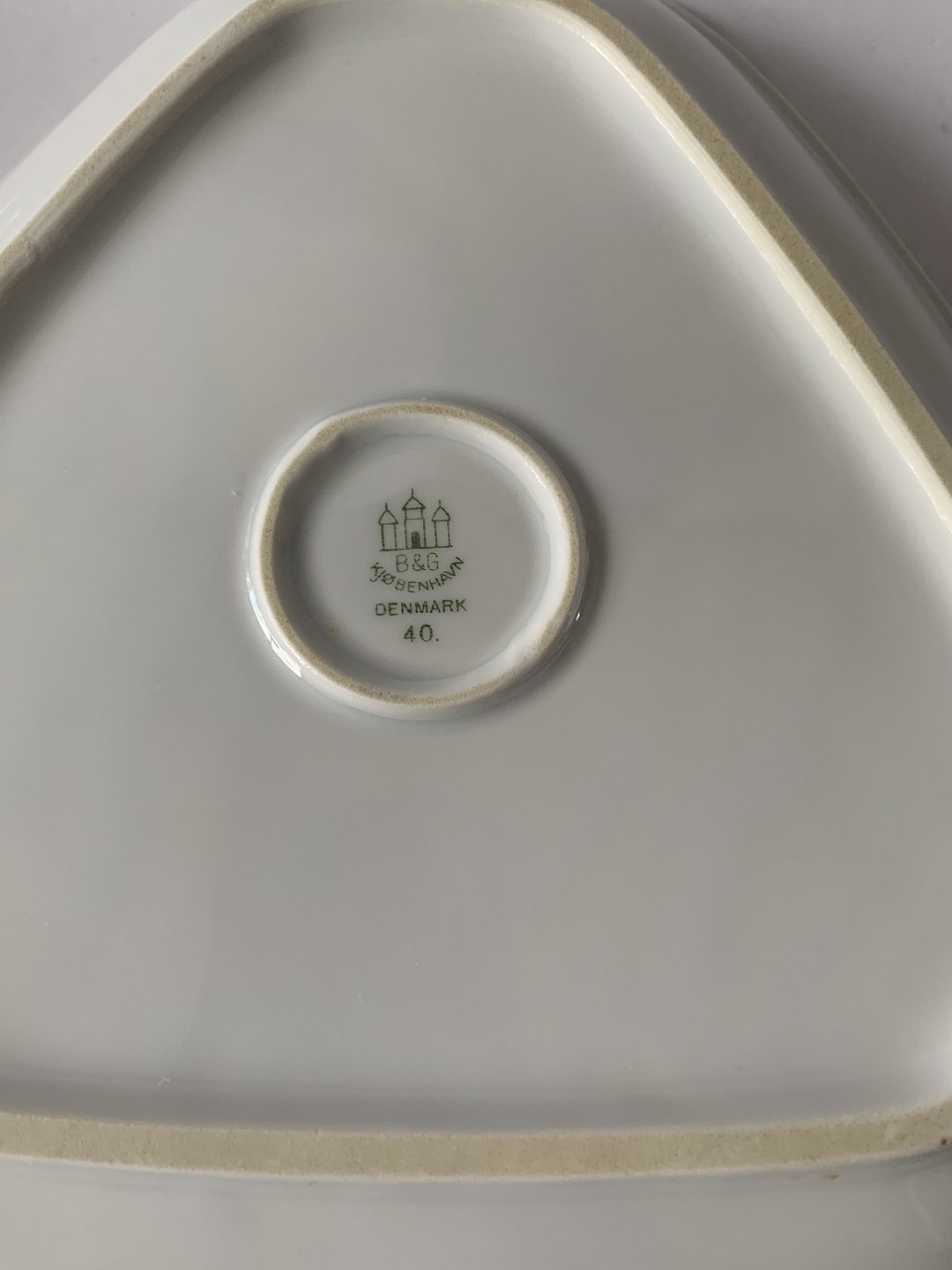 Bing & Grondahl White Koppel, Triangular Dish Design: Henning Koppel Decoration number 40 Size 23.5 cm. 2st grade. Perfect condition