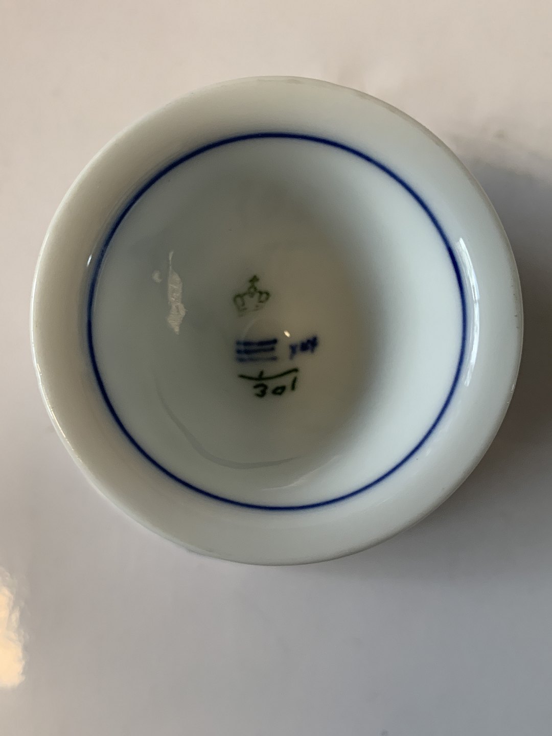 Royal Copenhagen Musselmalet Riflet, Dobbelt Æggebæger Dek. nr. 1/301 2.Sortering Måler 9,3 x 9,2 cm. Perfekt stand.