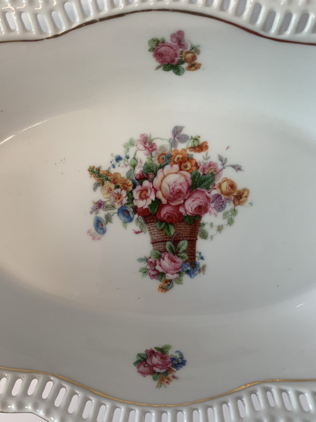 Bavaria Oval Bowl with flowers. Length: 29 cm. Width: 17.5 cm. Height: 6 cm. Nice and well-maintained condition.