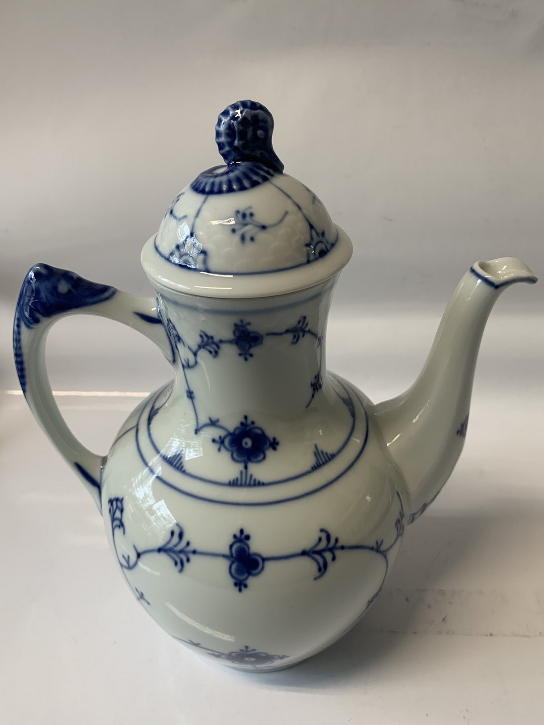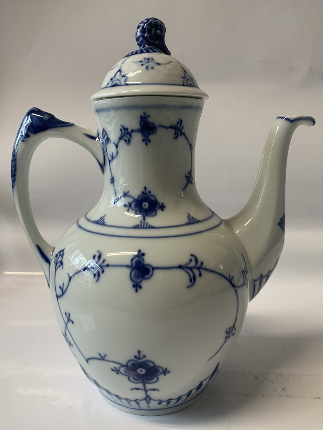 Bing & Grøndahl Blå malet "Musselmalet" Kaffekande / Mokkakande Dekorationsnummer 413. 3. sortering. Højde med låg. 22,5 cm. Pæn og velholdt.
