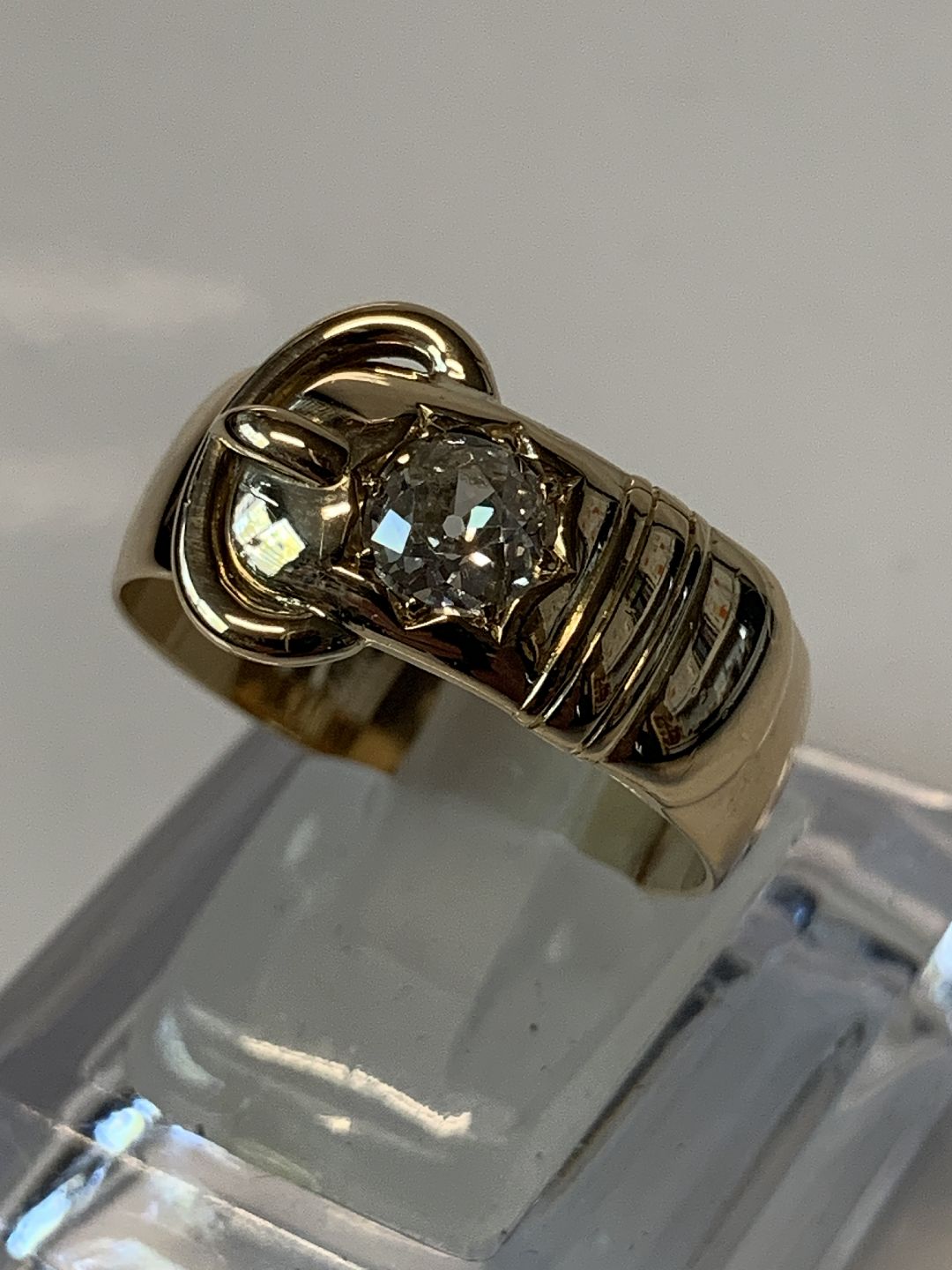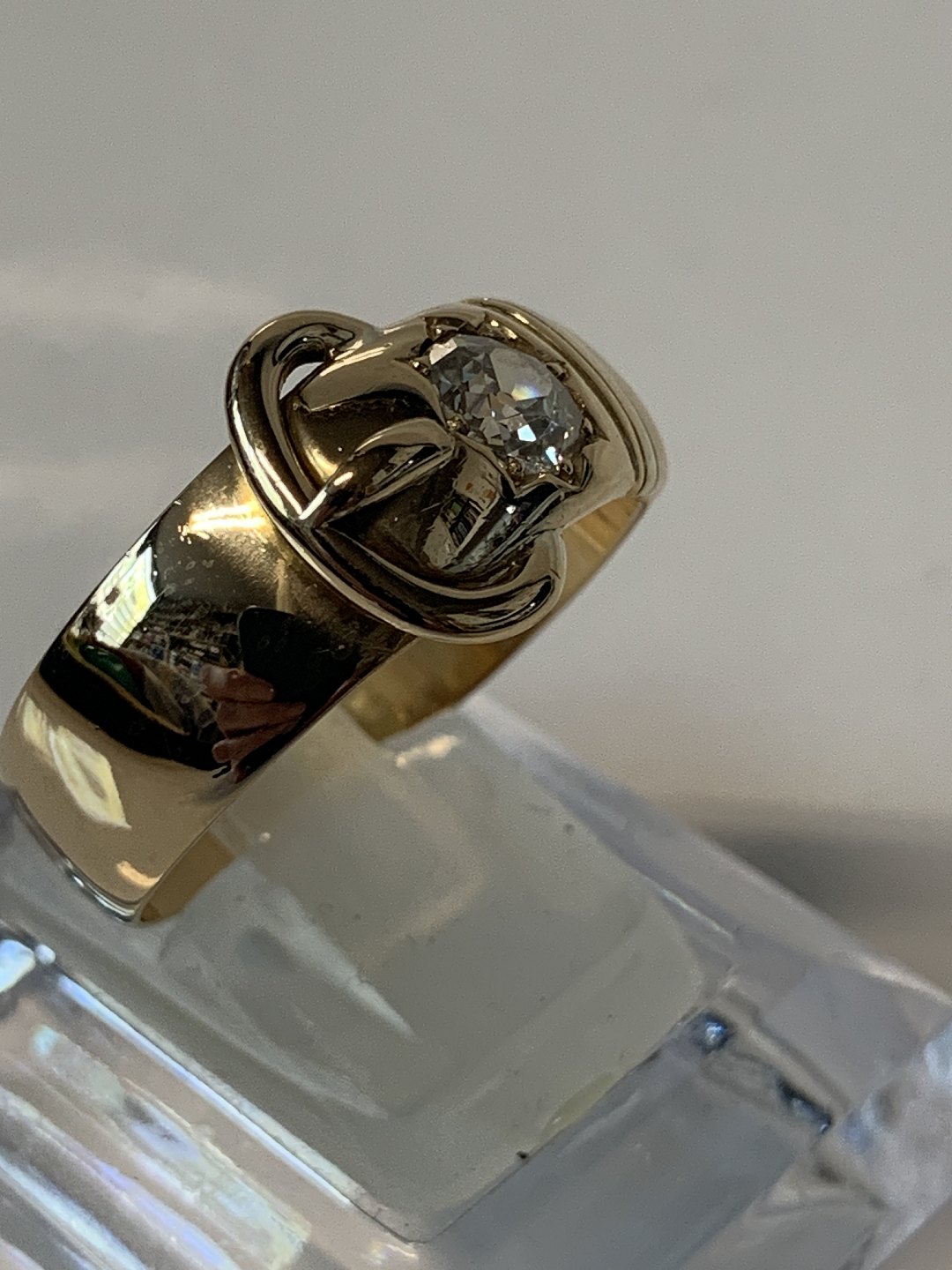 Herrering med Diamant, 18 karat Stemplet: 750. Størrelse: 69 / Indvendig Diameter 21,96 mm. Flot og velholdt Ingen eller næsten ingen brugsslidtage. Varen findes ikke fysisk i forretningen Kontakt os for fremvisning