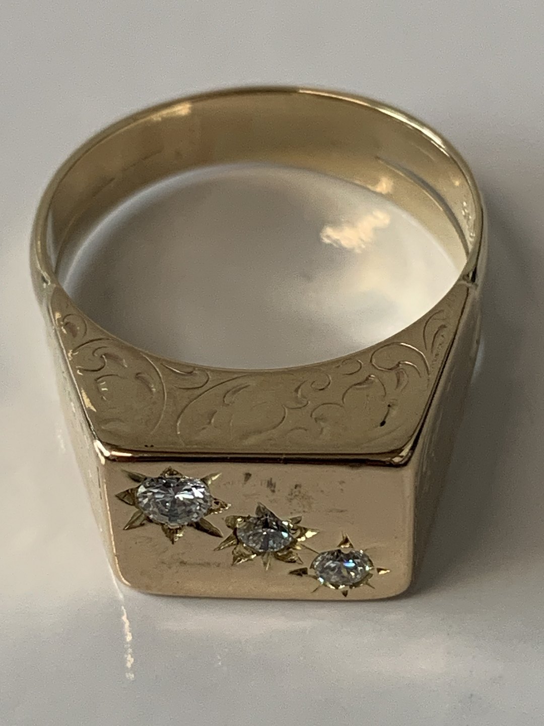 14 Carat Signet ring with 3 Diamonds.