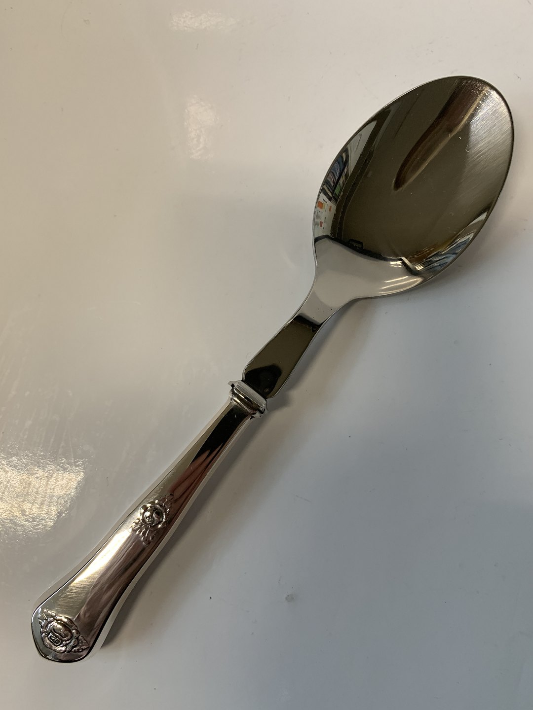 Serving spoon with steel blade, Rosen Danish Silver Cutlery Horsens silver Length 18.1 cm. Well maintained condition. Polished and packed in bag.