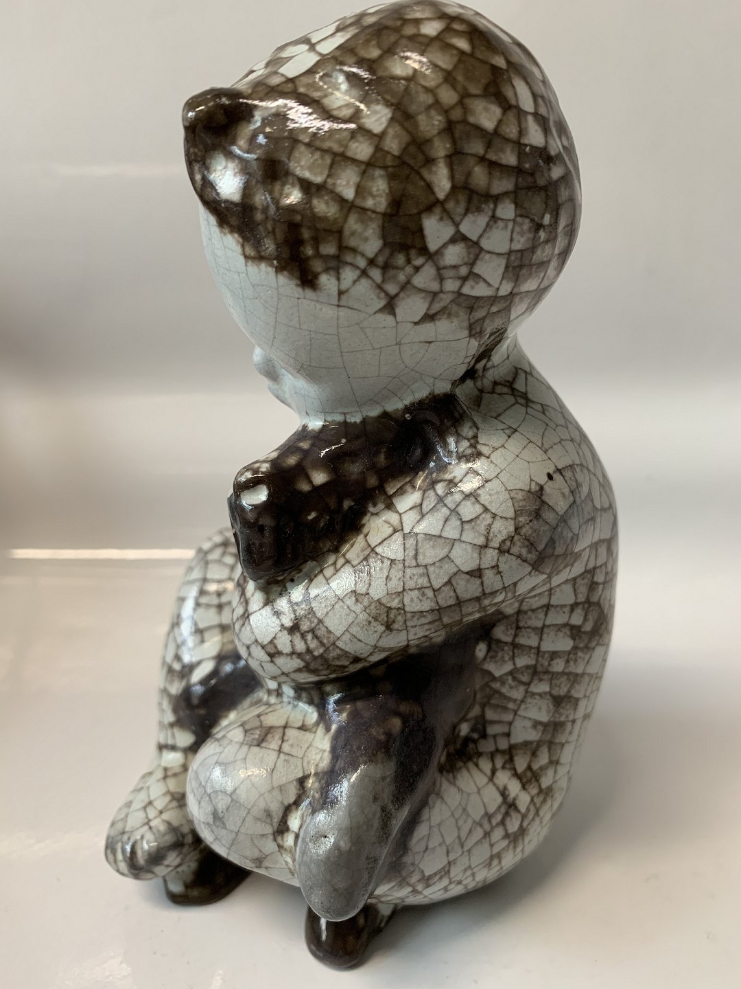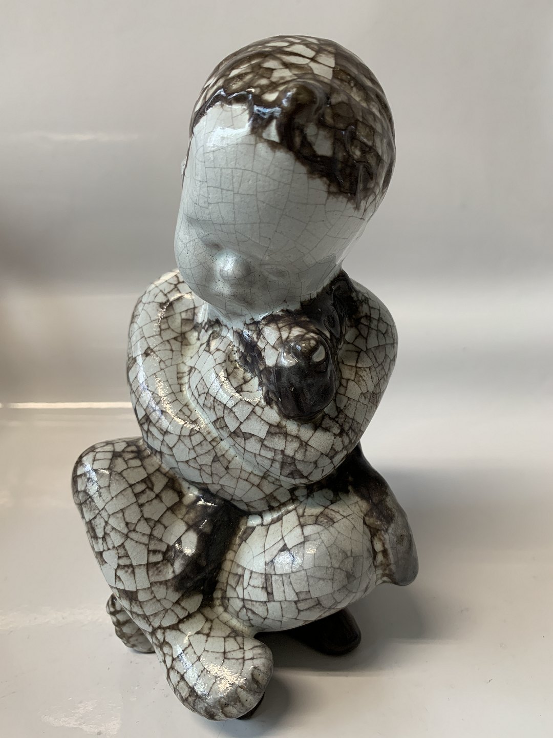 Bornholmsk keramik, Michael Andersen, Dreng med hund. Dekorationsnummer 4741. Højde 15 cm. Perfekt stand.