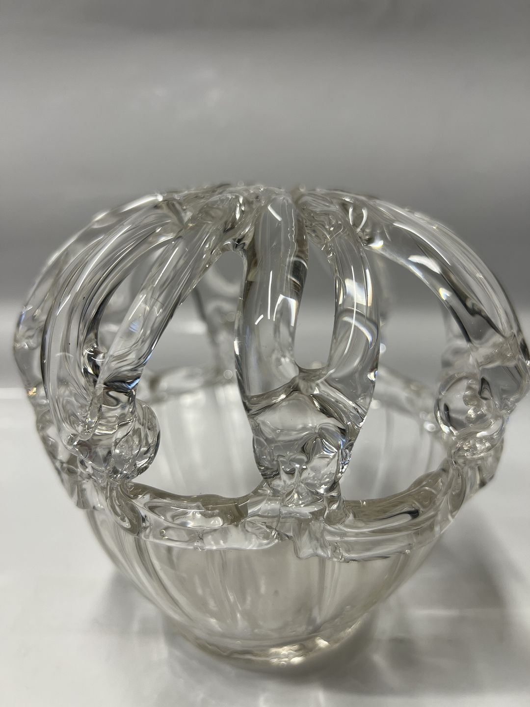 Stor Brudekrone vase i klar glas. År. ca. 1920, Danmark. Proveniens.: Aarhusiansk familie. Antagelig glasfusk fra Aarhus Glasværk. Højde: 12,5 cm. Diameter: 14,5 cm. Perfekt stand.