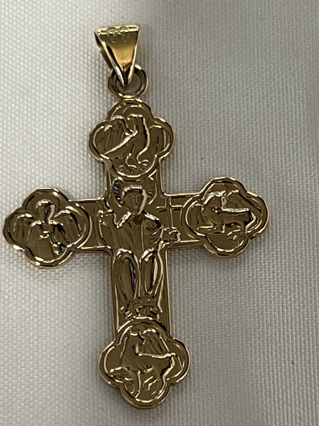 Dagmarkors i 14 karat guld, med Jesus og de 4 evangelister. stemplet CMC 585