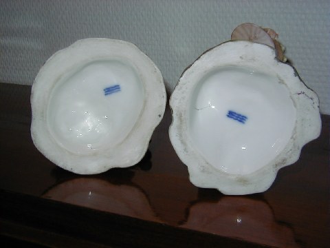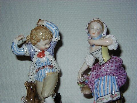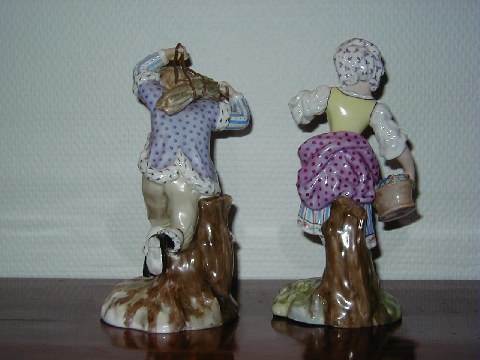 Et par sjældne Kongelige Overglasur figurer fra før år 1900. Flot dekoreret og udført med detaljer med blomster og lignende fra Flora Danica serien. Højde 19 cm. 1. sortering. Begge er solgt.