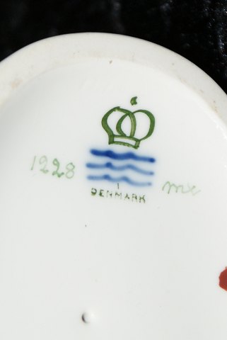 En flot og sjælden Overglasur Figur fra Royal Copenhagen af Klods Hans med Juliane mærket Produceret 1945 Dek. nr. 1228 1. sortering. Højde 18 cm. Perfekt stand.