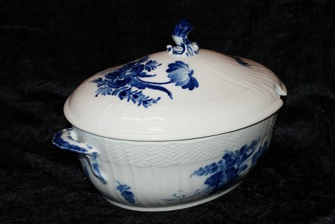Kongelig Blå Blomst Svejfet, Terrin med låg og hul til ske Dek. nr. 10/#1666 Højde 19 cm. Længde 31 cm. Dybde 19 cm. Låg 1.sortering Personalevare Pæn og velholdt stand