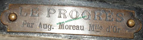 Signed in August Moreau in sculpture, tile on the shelf marked: "Le Progres, par August Moreau, Mlle d'Or" and "Commerce, MARITIME,