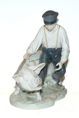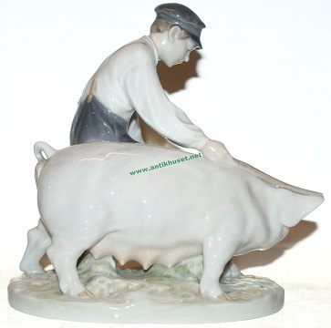 Sjælden Kongelig Figur, Svine hyrde (Svinedreng) Design: Chr. Thomsen 1907 Dek. nr. 848 Personale figur, flot i farver Højde 18,5 cm. Længde 18 cm. Flot og Velholdt stand, fejl fri.
