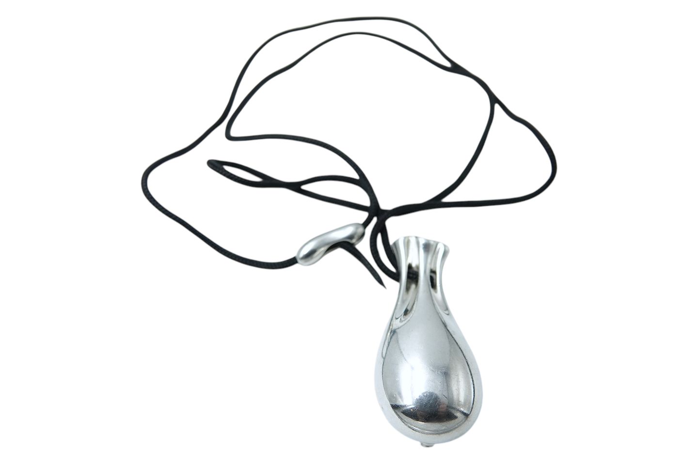 Georg Jensen sterling silver, large pendant that can be opened with cotton necklace.
