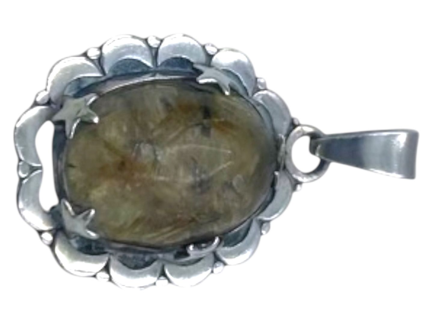 Large sterling silver pendant with rock crystal. Hallmarked "CL 925". Measures 2.7 by 2.2 cm. Excellent condition.
