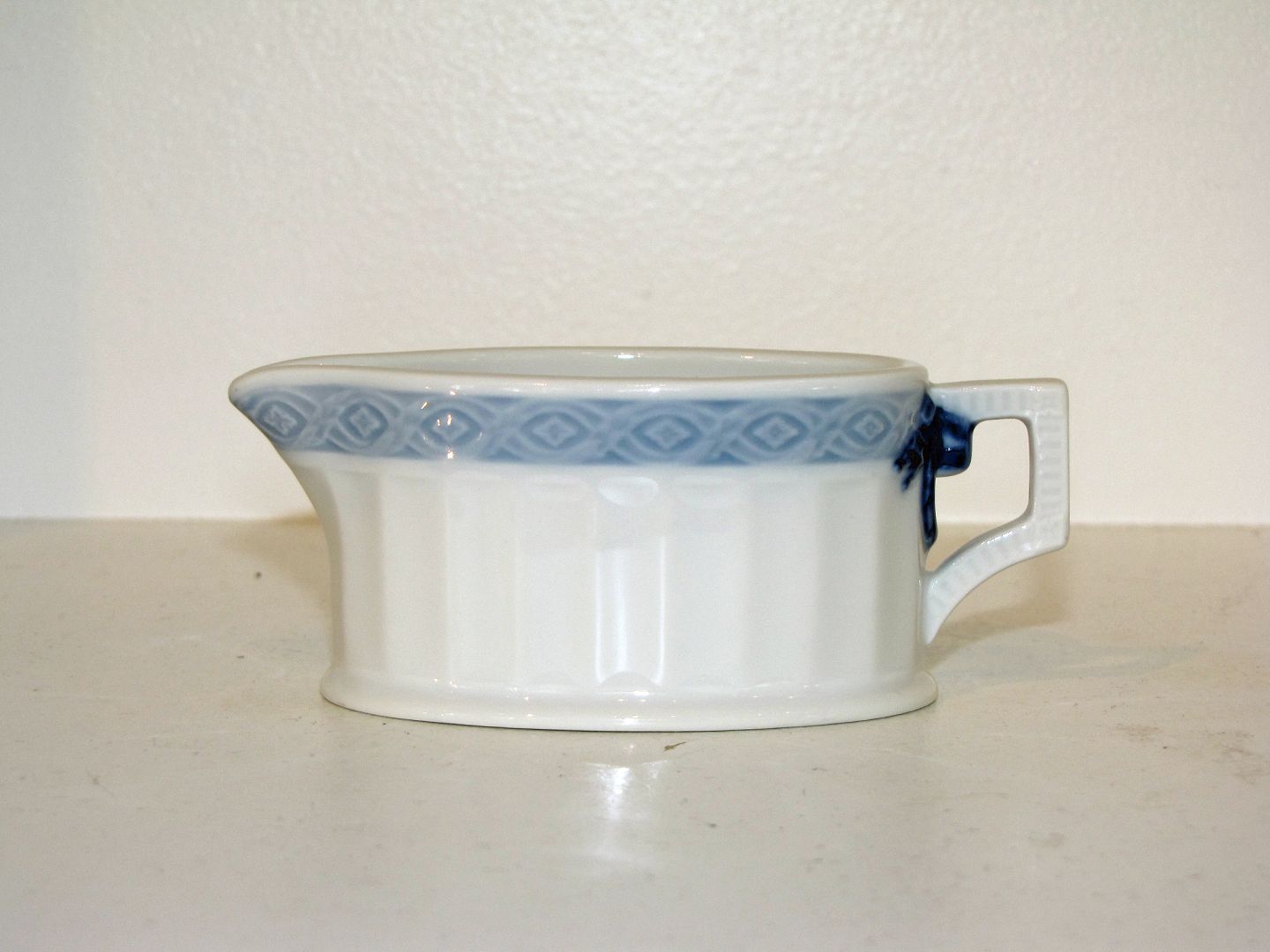Royal Copenhagen Blå Vifte, lille flødekande. Designet af Arnold Krog i 1909. Dekorationsnummer 1212/11562. 1. sortering. Længde 10,2 cm. Perfekt stand uden fejl.