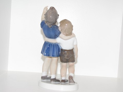 Bing & Grøndahl figurgruppe med to børn kaldet "Kast bolden ned". Af fabriksmærket ses det, at denne er produceret mellem 1962 og 1970. Dekorationsnummer 2278. 1. sortering. Højde 18,5 cm. Perfekt stand uden fejl.