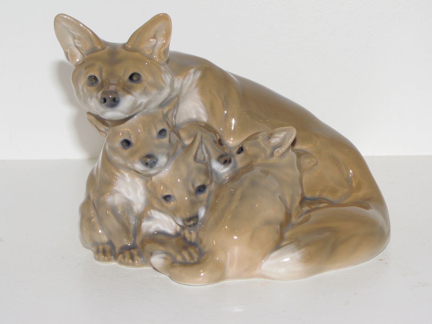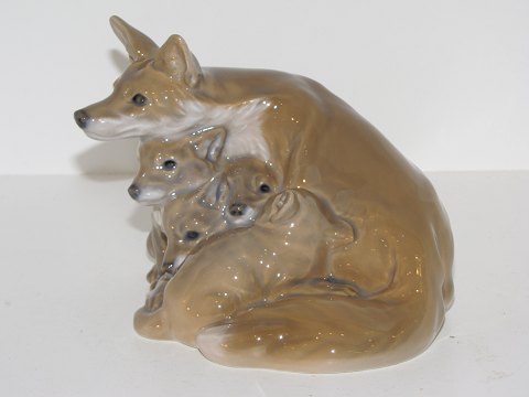 Royal Copenhagen figur, rævemor med unger.