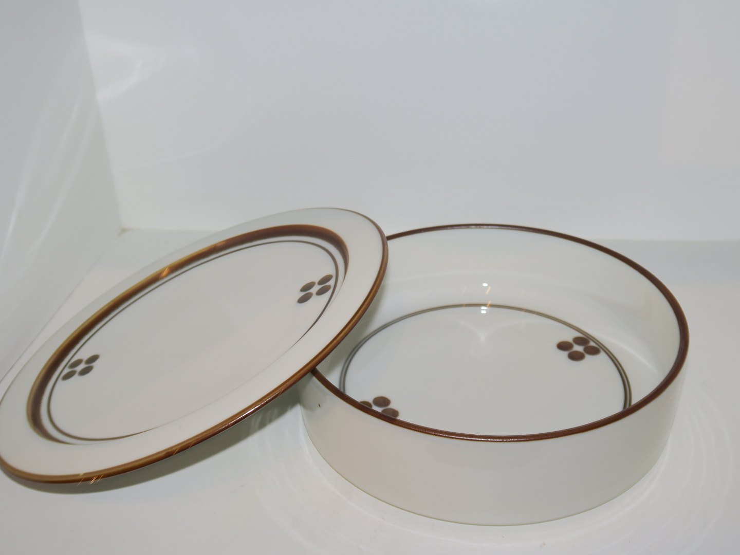 Royal Copenhagen Domino, skål med låg. Dekorationsnummer 14902. Medarbejdersortering Diameter 18,2 cm. Perfekt stand uden fejl.