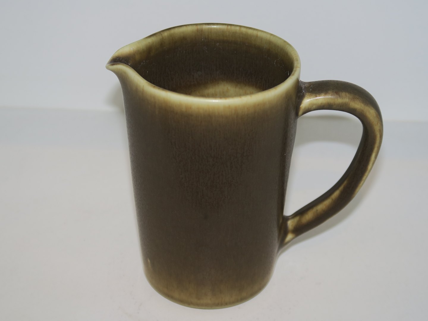 Palshus art pottery, milk pitcher with brown glaze.