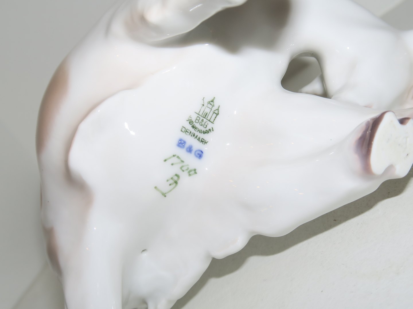 Bing & Grondahl figurine, goat. The factory mark tells, that this was produced between 1962 and 1970. Decoration number 1700. Factory first. Length 16.0 cm. Perfect condition with no chips, cracks or repairs.