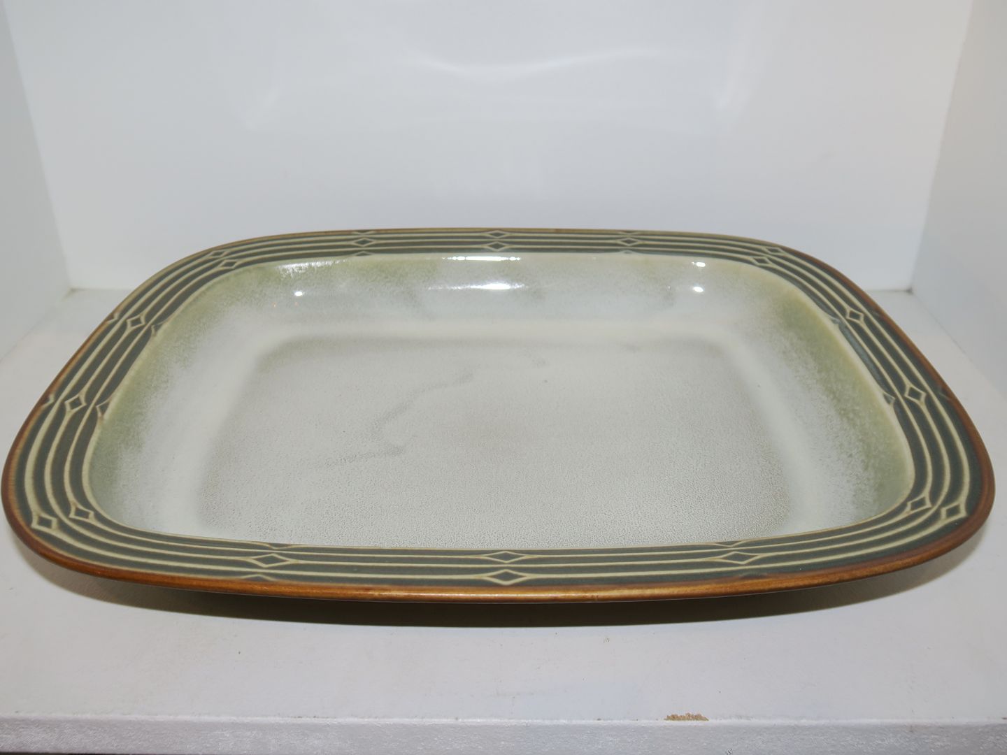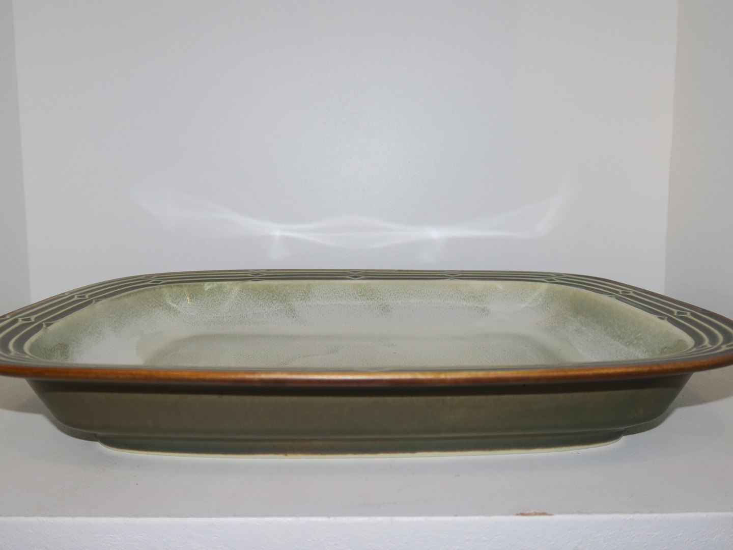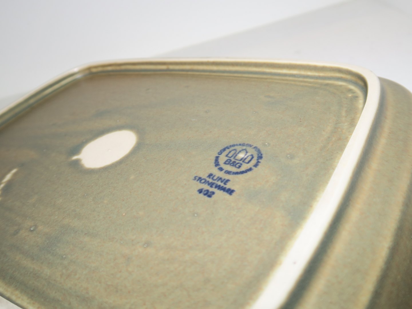Bing & Grøndahl Rune stentøj, stort, dybt firkantet fad.