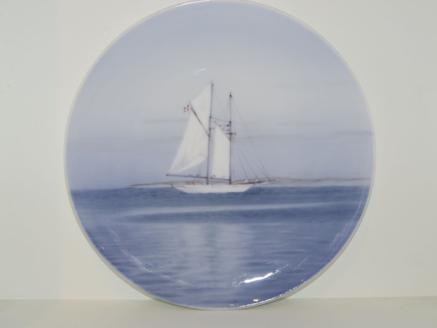 Royal Copenhagen platte med sejlskib med Dannebrog.