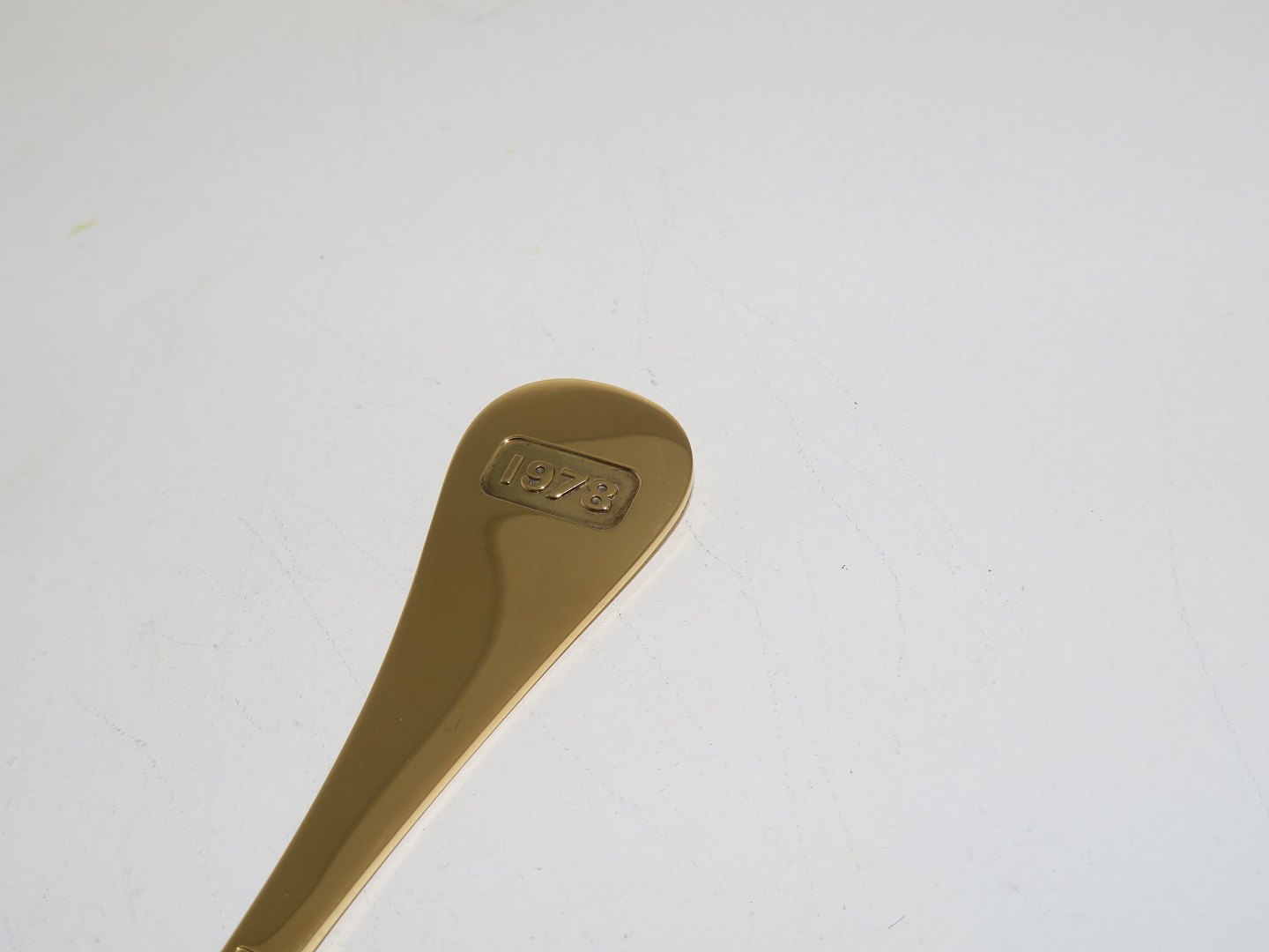 Georg Jensen guilded sterling silver. Year spoon from 1978. This is including the original box but without the original brochure. Length 14.8 cm. Perfect condition with no engravings.