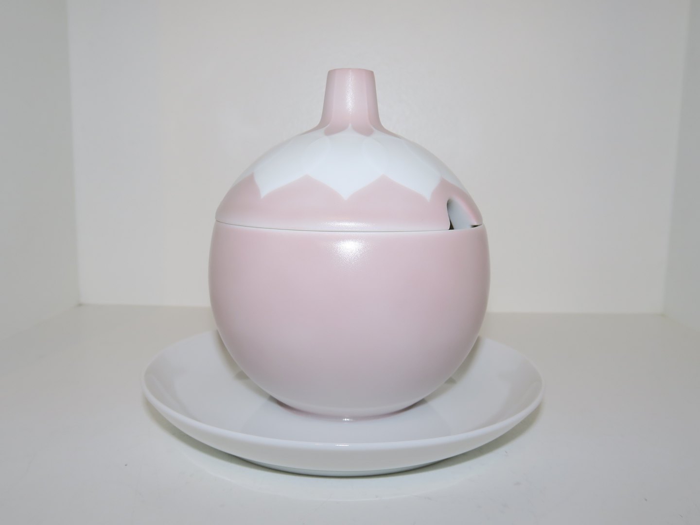 Bjorn Wiinblad Pink Lotus, marmelade jar. Made at Rosenthal. Height 11.0 cm. Perfect condition.
