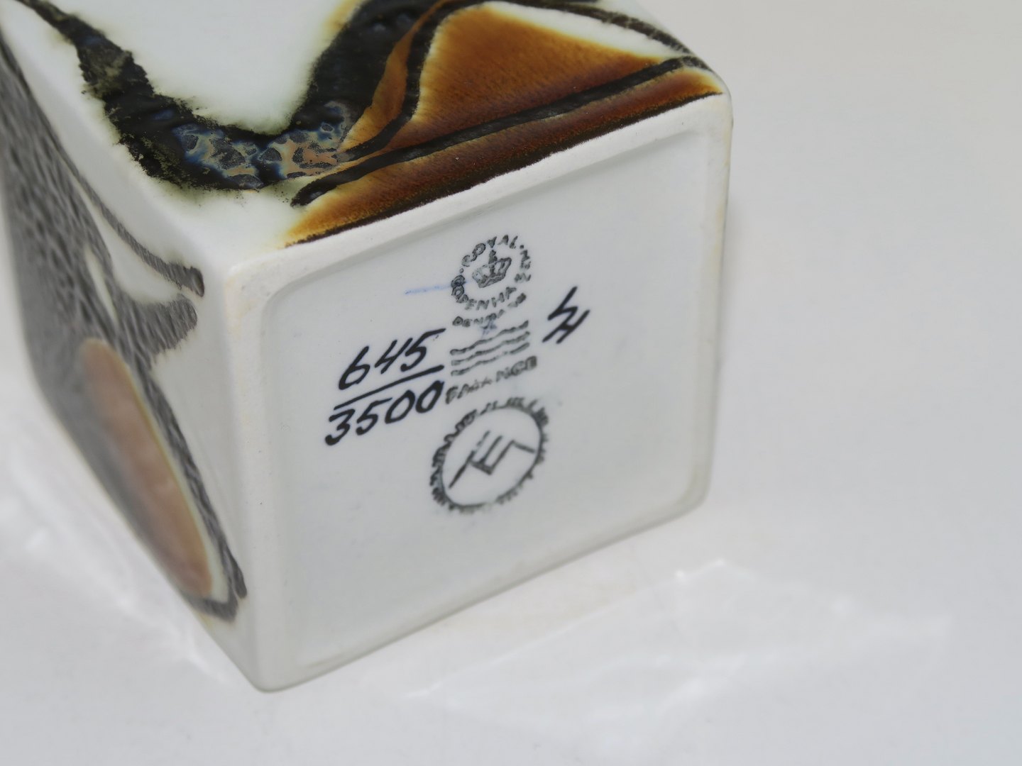Royal Copenhagen Tenera, firkantet lysestage. Designet af Ellen Malmer. Dekorationsnummer 645/3500. 1. sortering. Højde 6,3 cm. Perfekt stand uden fejl.