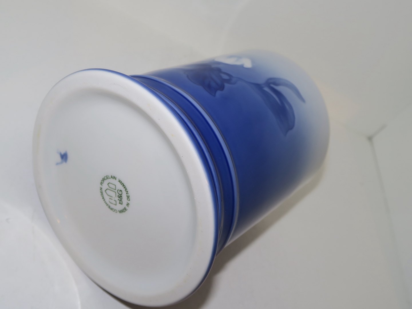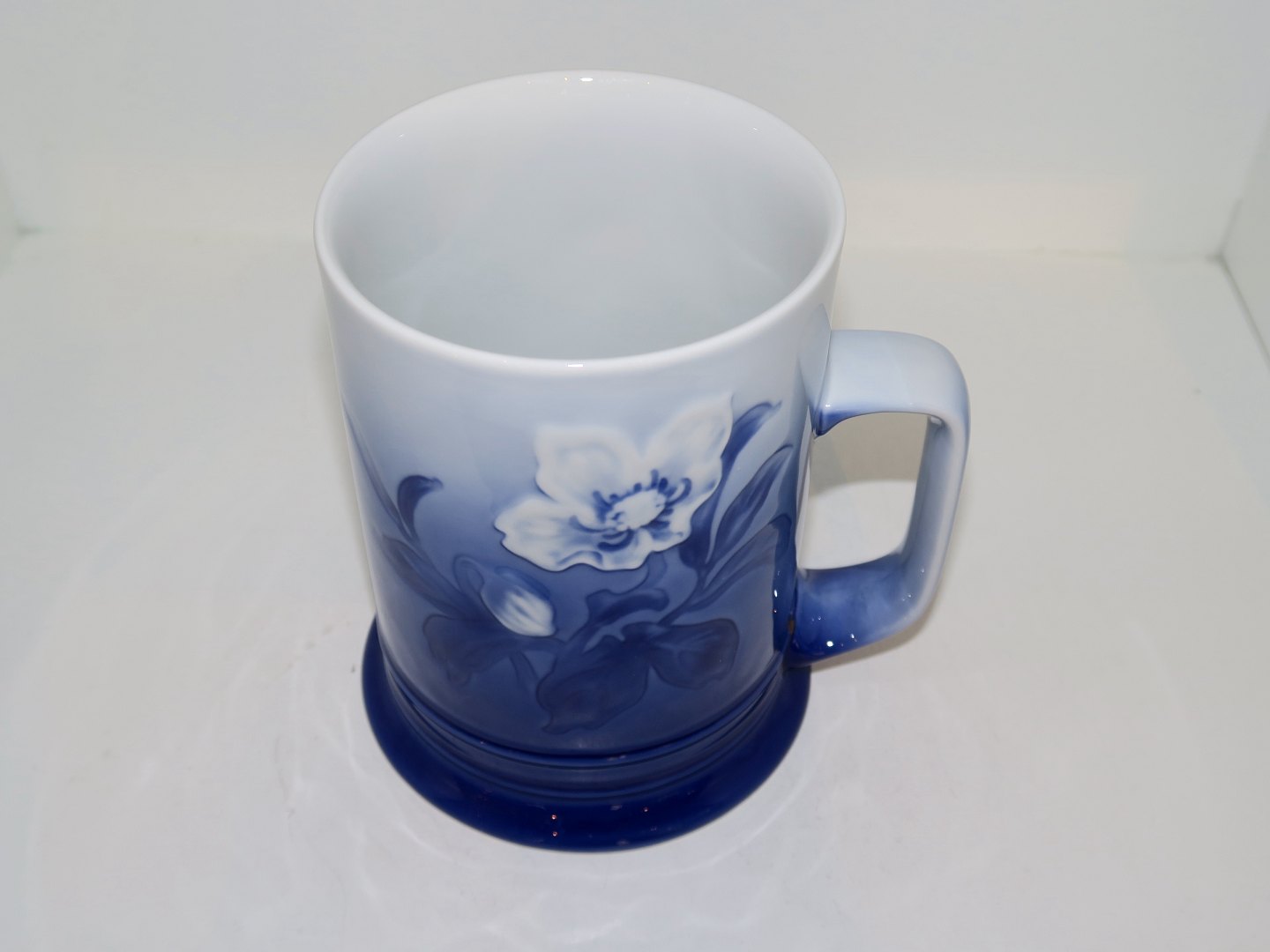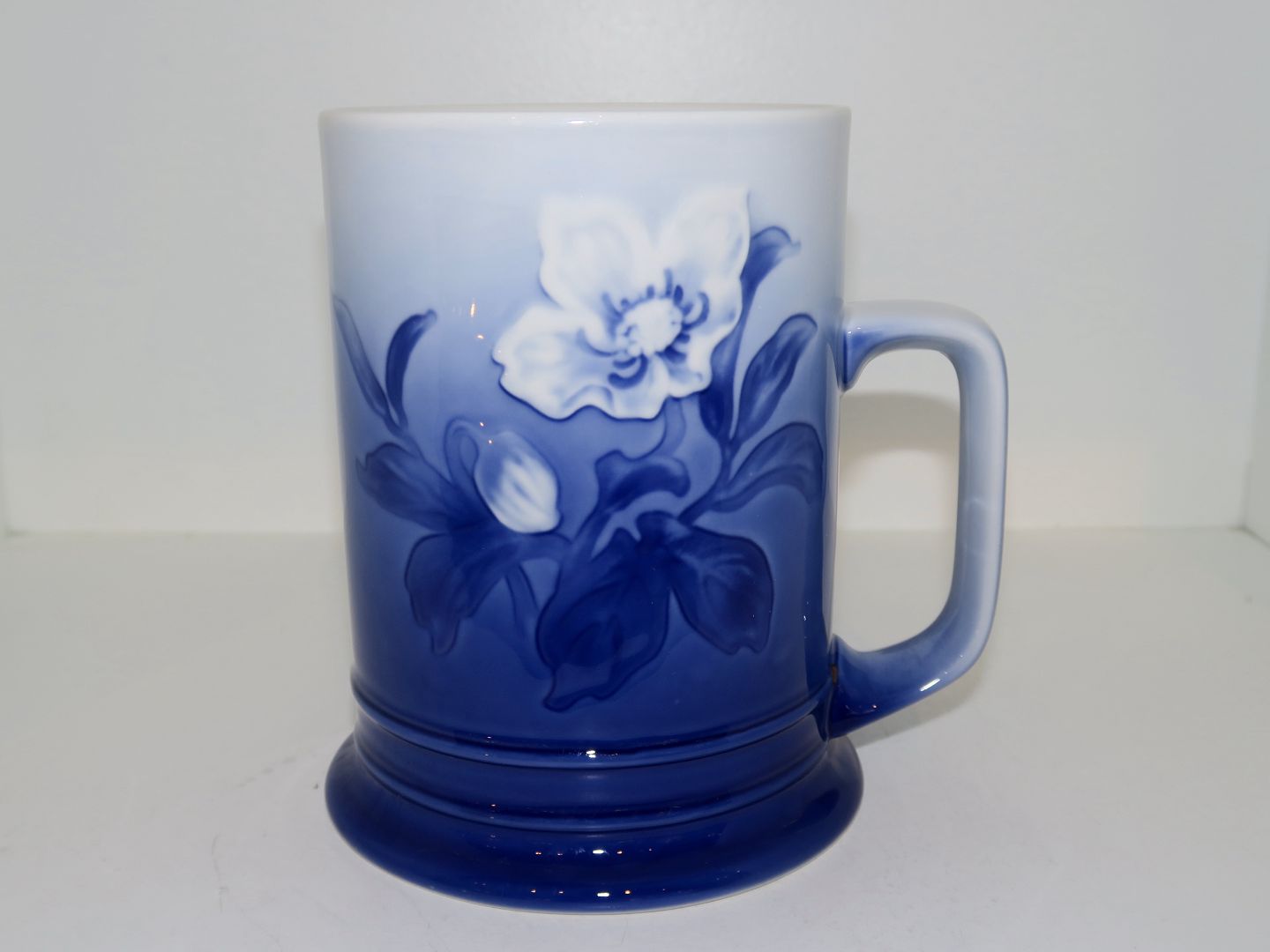 Bing & Grøndahl Julerose, stort krus / ølkrus. Af fabriksmærket kan det udledes, at denne er produceret mellem 1970 og 1983. 3. sortering. Højde 13,0 cm., diameter 9,0 cm. Perfekt stand uden fejl.