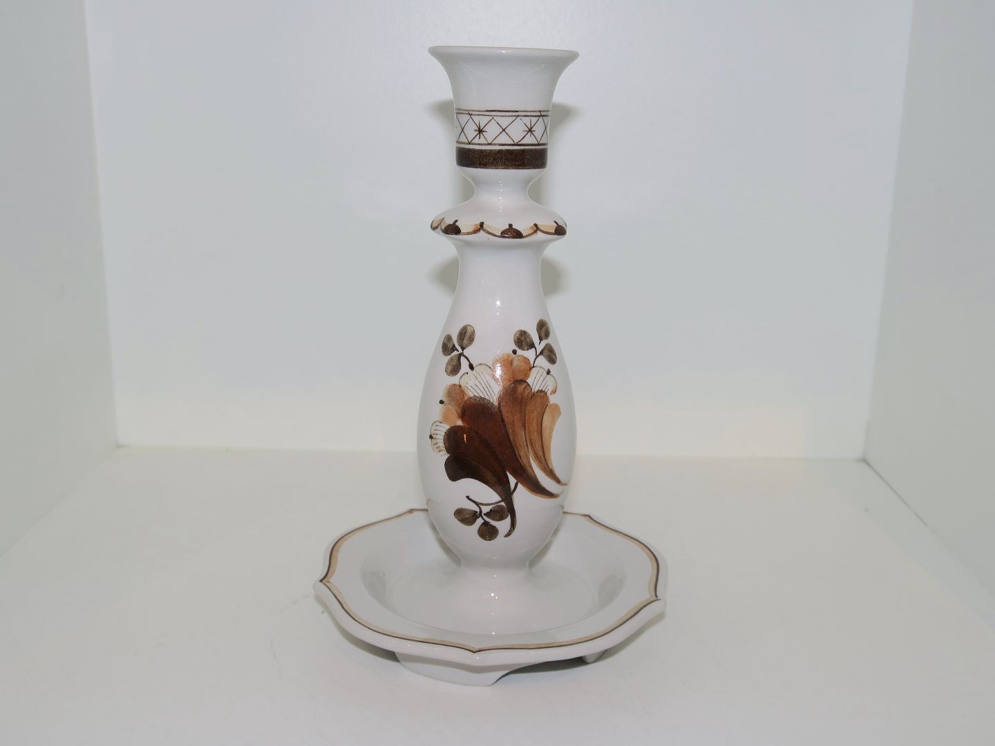 Aluminia Brun Tranquebar, sjælden lysestage. Dekorationsnummer 2055/1135. 1. sortering. Højde 20,0 cm. Perfekt stand uden fejl.