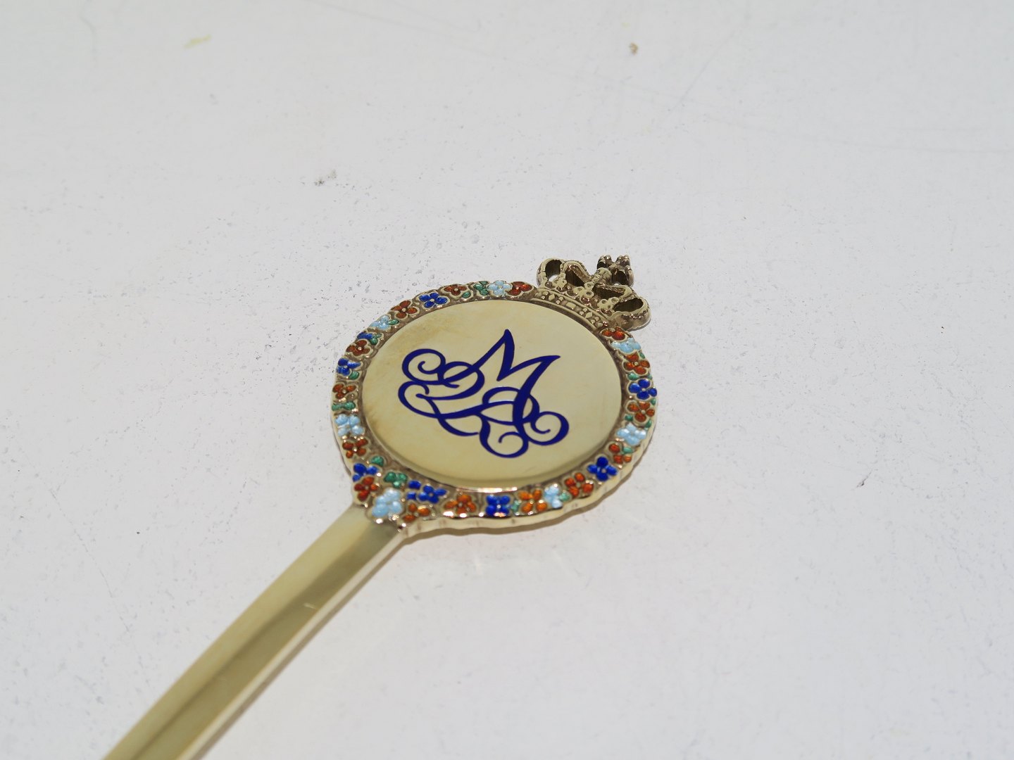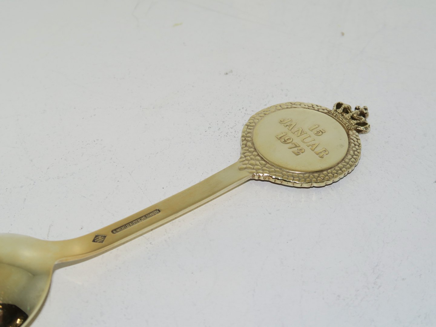Anton Michelsen forgyldt sterlingsølv, mindeske fra 1972. I anledning af Dronning Margrethes kroning den 15. januar 1972. Designet af Jørgen Michelsen. Længde 16,0 cm. Perfekt stand.