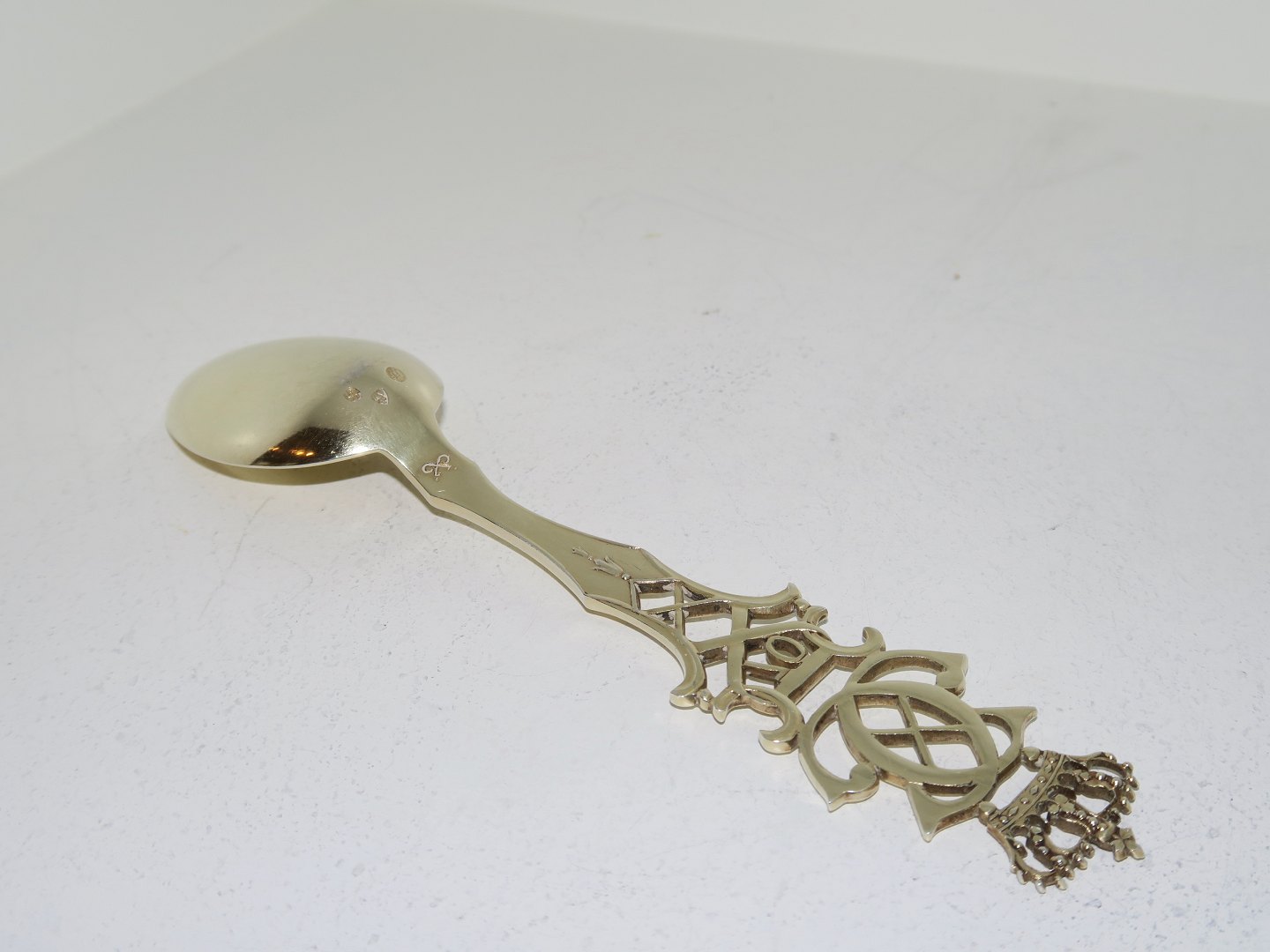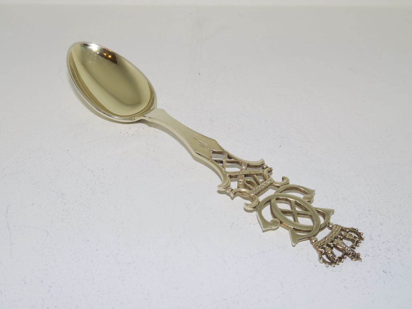 Anton Michelsen guilded sterling silver, commemorative spoon from 1940. The 70th. birthday of King Christian X on September 26th. 1940. Designed by Jens Ingwersen. Length 16.0 cm. Perfect condition.