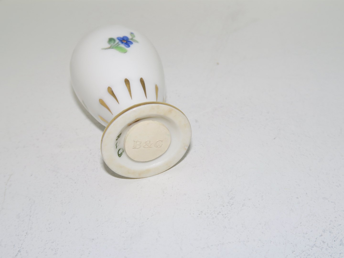Bing & Grondahl Sachian Flower on white porcelain, pepper shaker. The factory mark shows, that these were produced between 1948 and 1970. Factory first. Height 7.0 cm. Perfect condition with no chips, cracks or repairs.