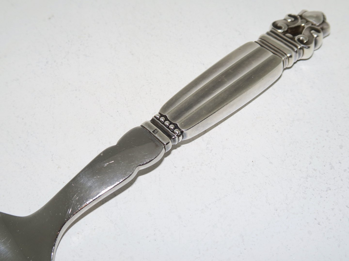 Georg Jensen Konge sterlingsølv og rustfrit stål, tarteletspade. Produceret efter 1945. Længde 20,3 cm. Fin stand uden indgraveringer.